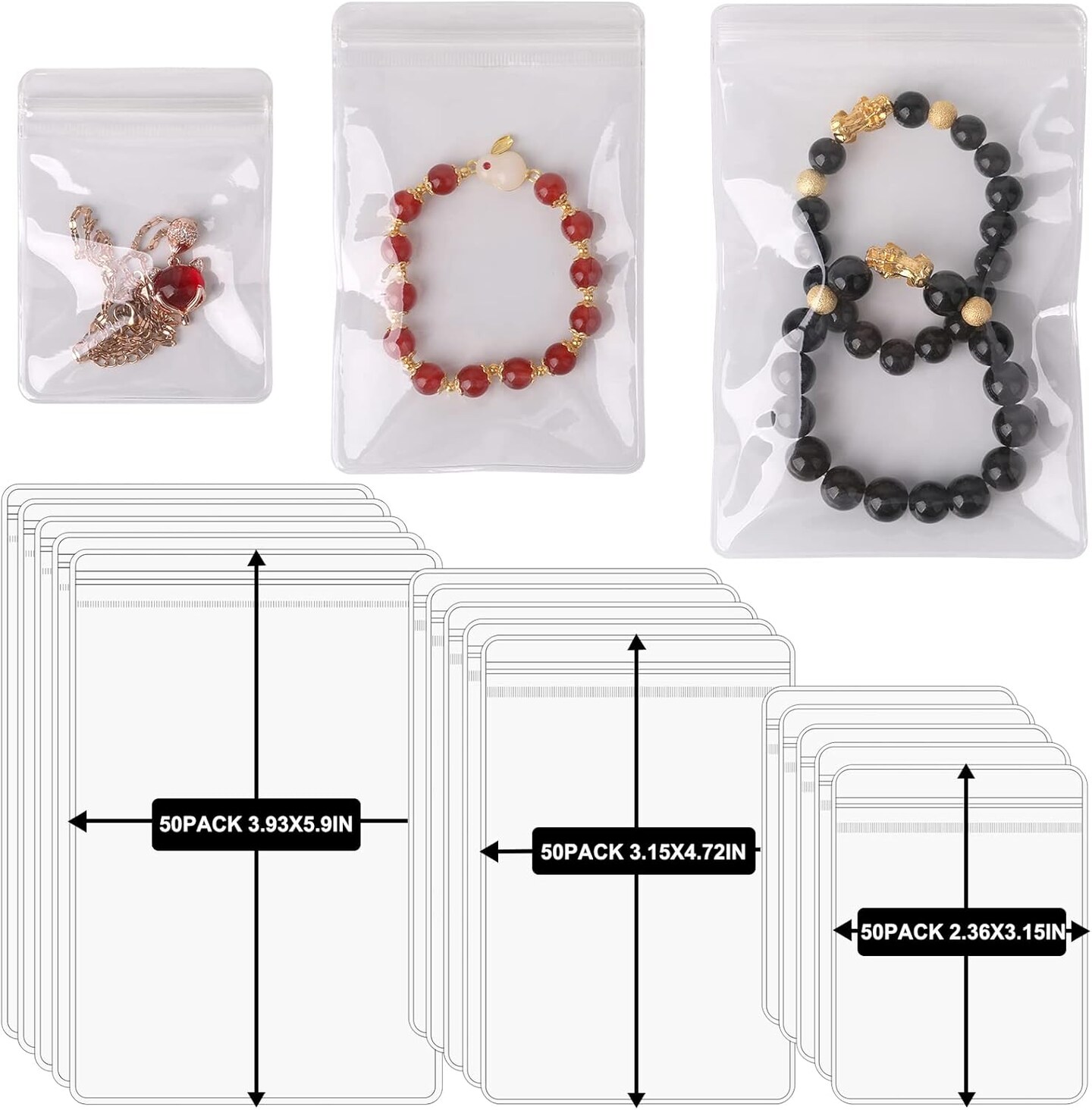 150Pack Self Seal PVC Jewelry Bags Clear Plastic Jewelry Storage Zipper Bag Anti Tarnish Jewelry Organizer Ziplock Bag for Women, 3 Sizes PVC Packing Pouch Lock Bags for Holding Jewelry Earring Ring