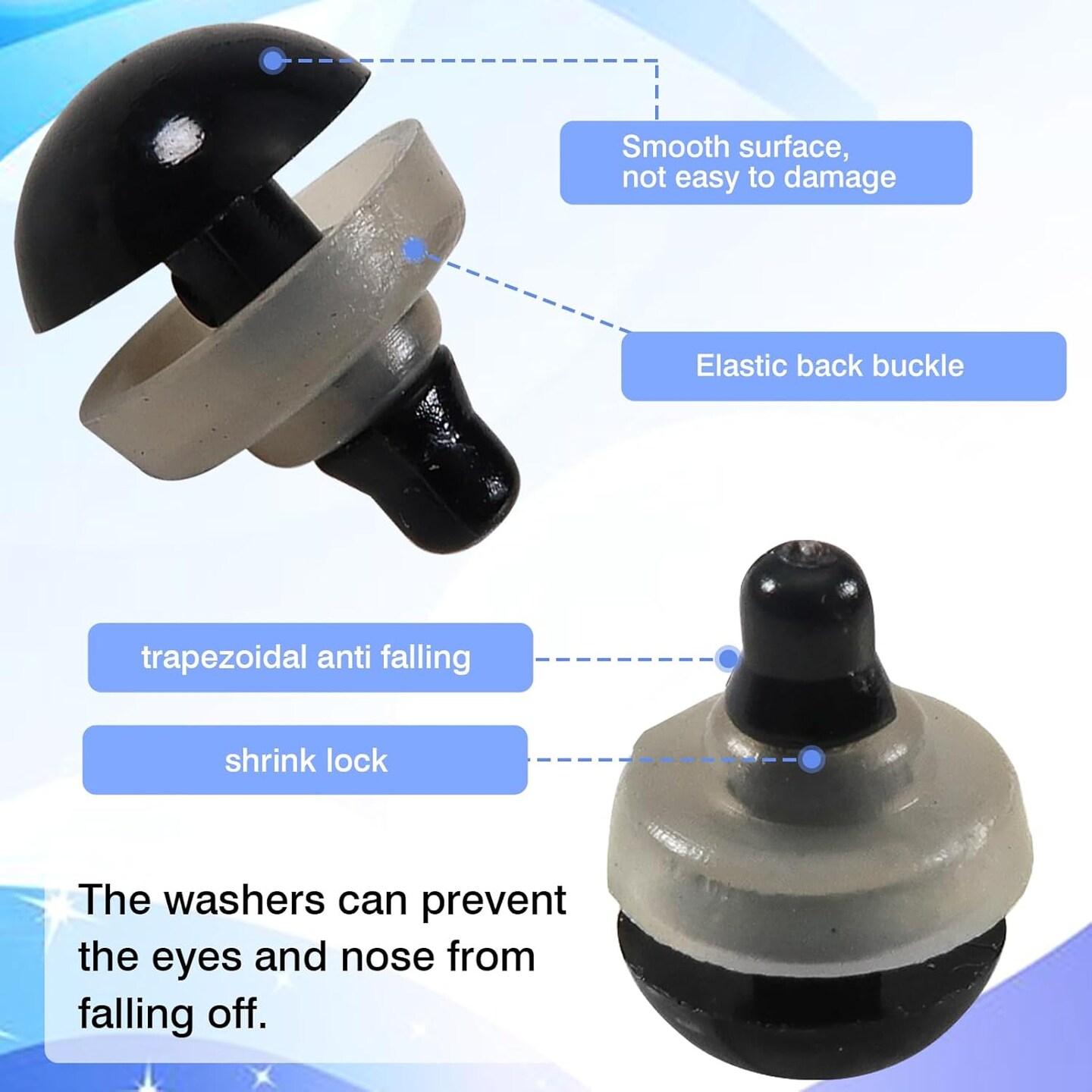 150PCS Large Safety Eyes for Amigurumi, 12mm-30mm Black Plastic Crochet Doll Eyes with Washers for Stuffed Animals, Bears & DIY Crafts