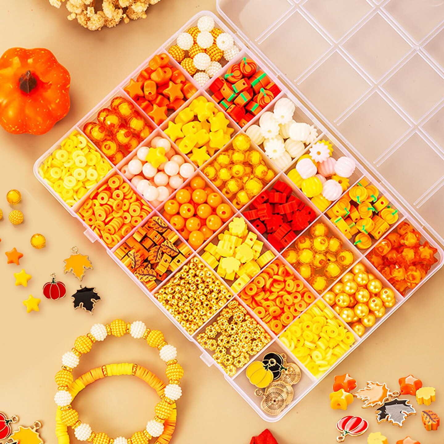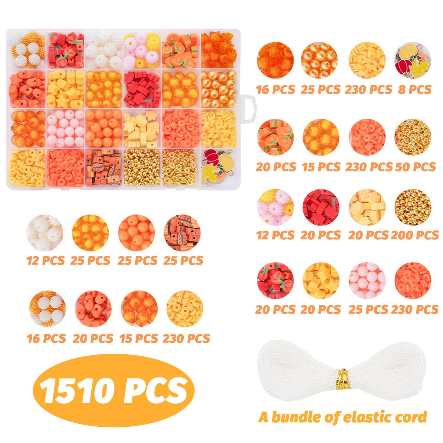 1510 Pcs Fall Bracelets Beads Kit with 24 Grid Storage Box Maple Leaf Pumpkin Star Shaped Clay Beads for Jewelry Making Beads Heishi Beads for DIY Craft Thanksgiving Harvest Party Gift