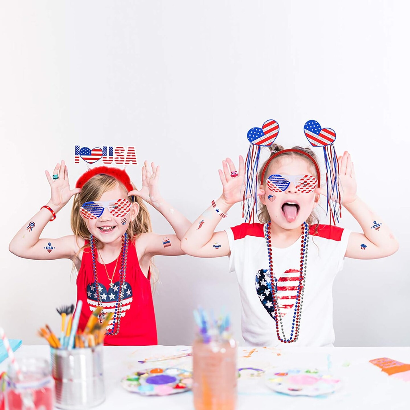 155 Pack 4th of July Beaded Jewelry and Temporary Tattoos(Red White Blue)
