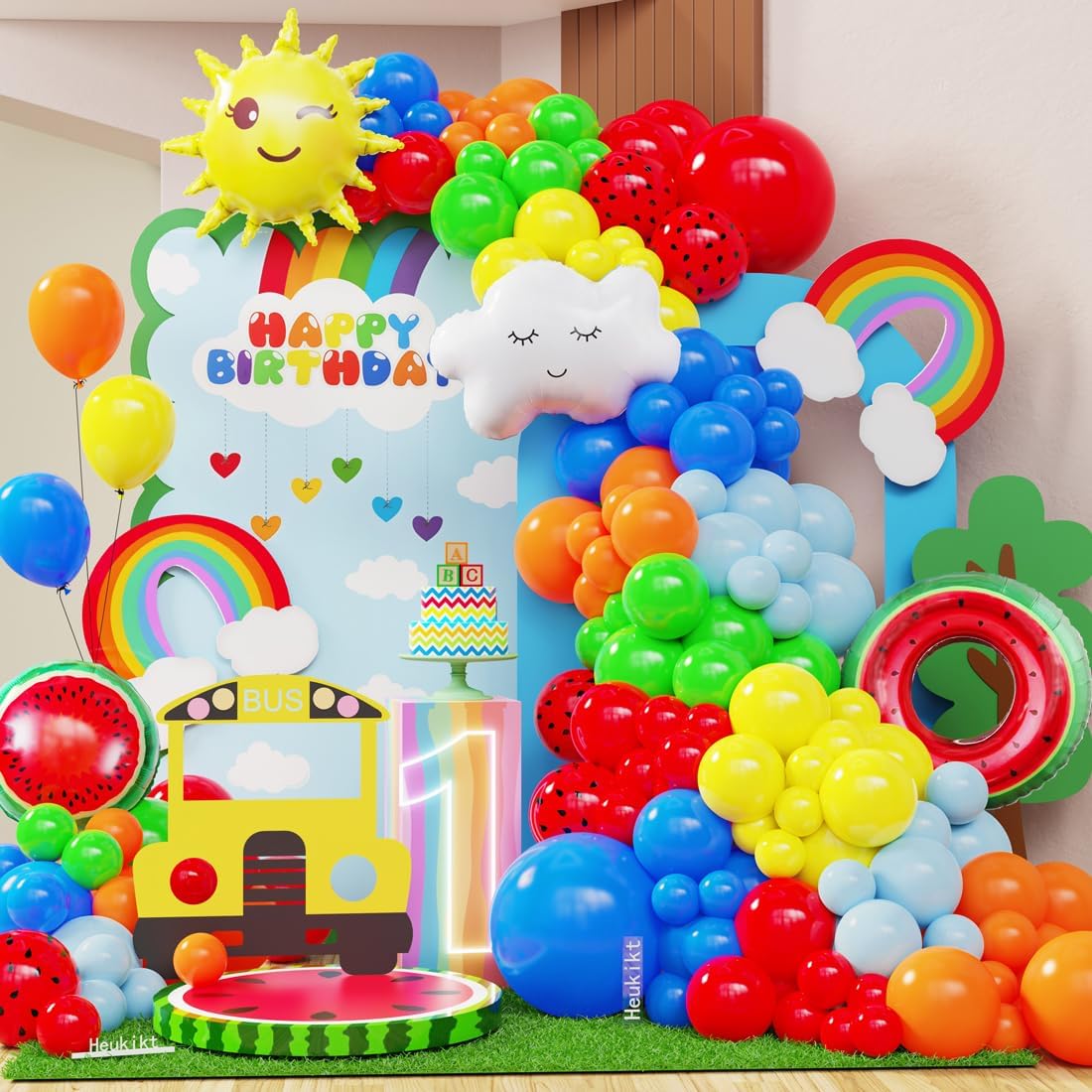 156Pcs Rainbow Color Balloon Garland Arch Kit(Multicolor)