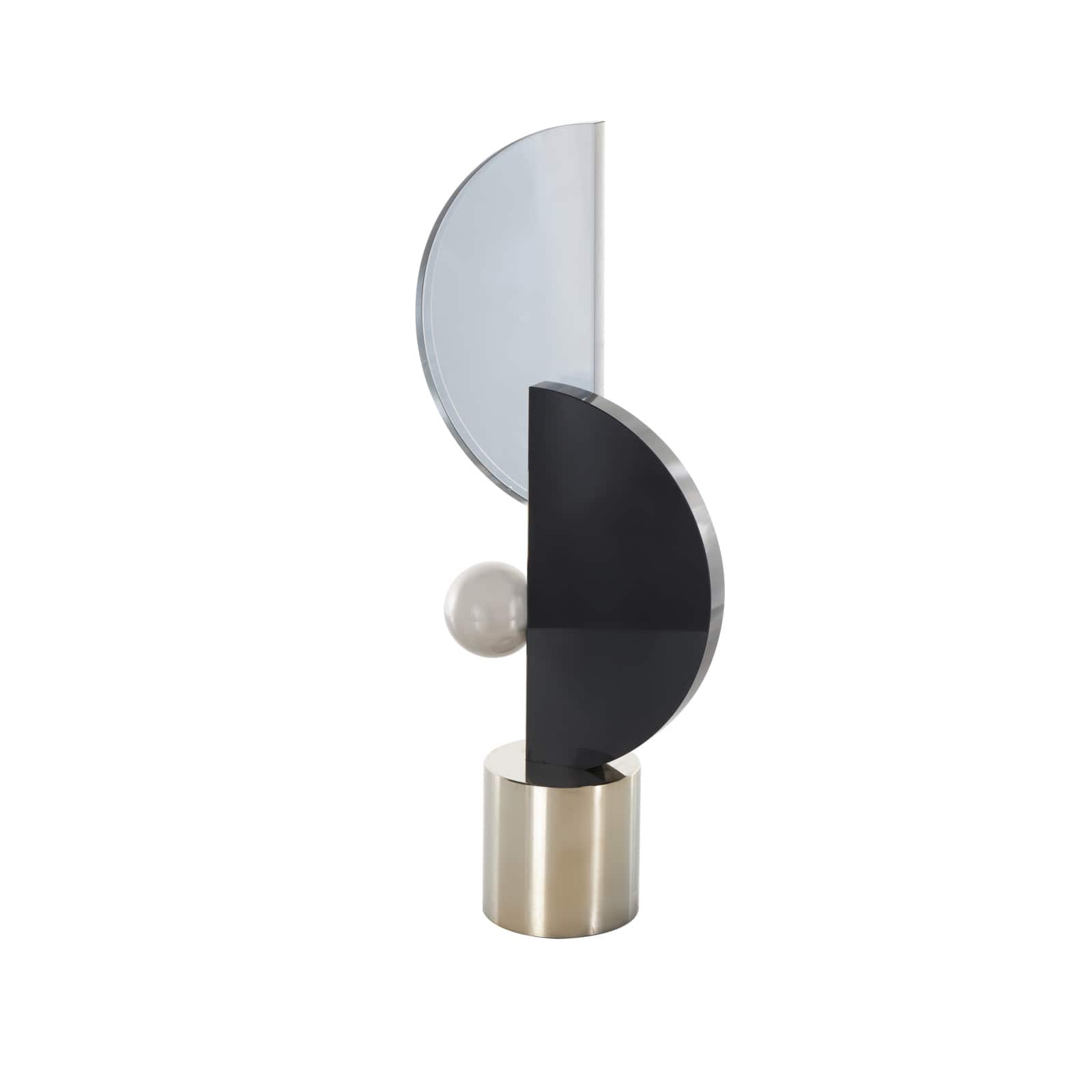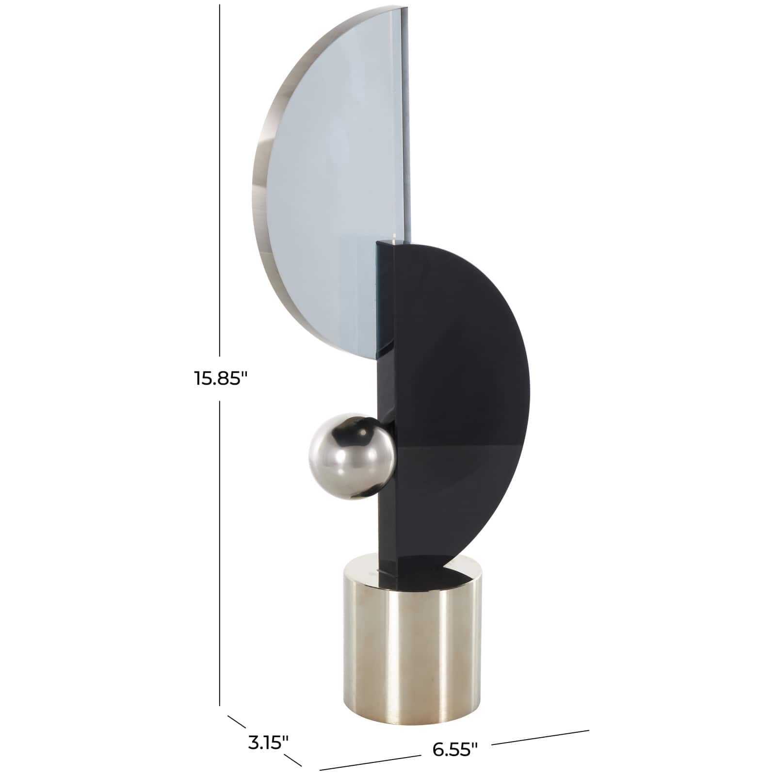 15.75" Black Glass Abstract Decorative Sculpture with Silver Orb & Base
