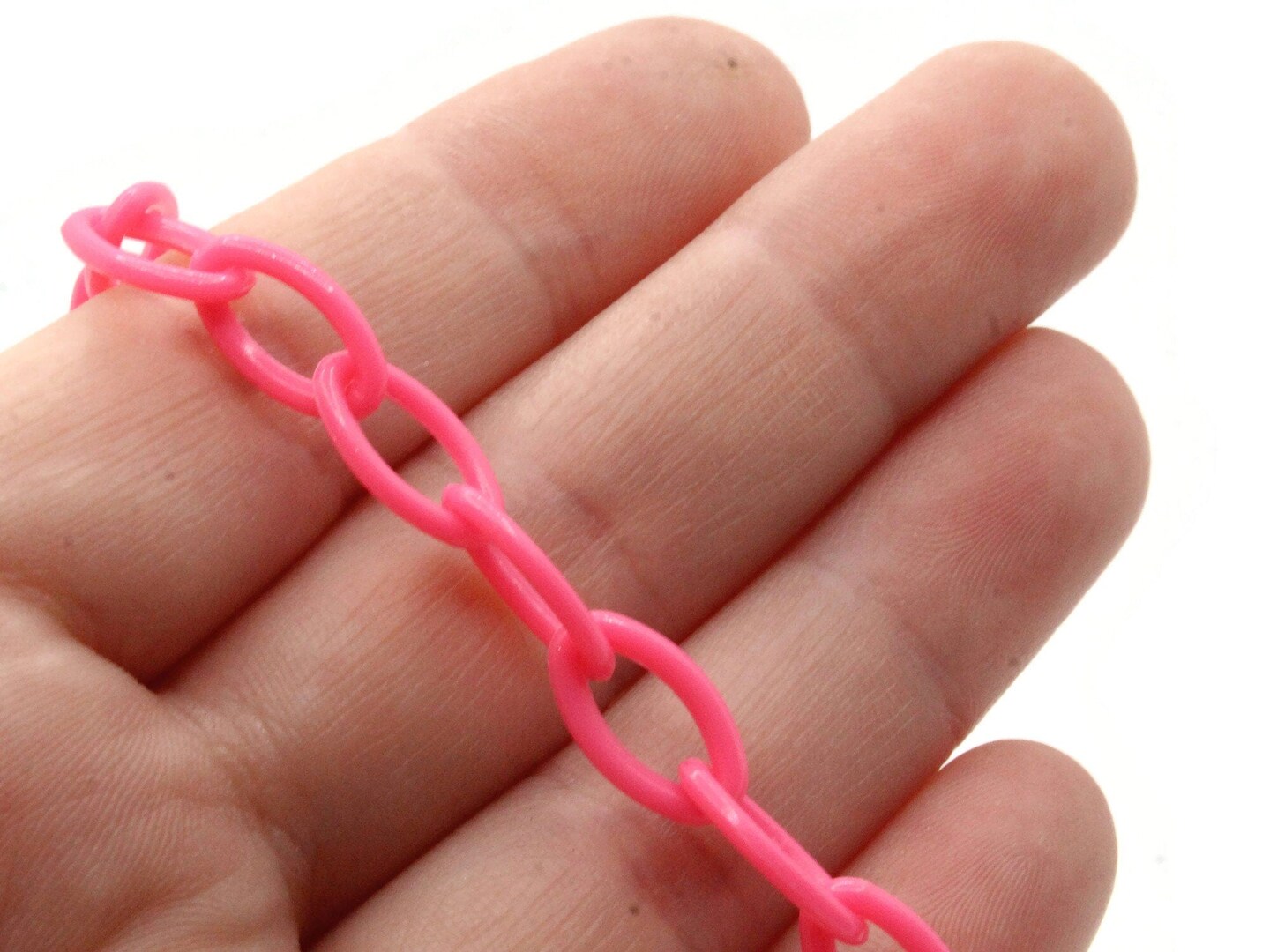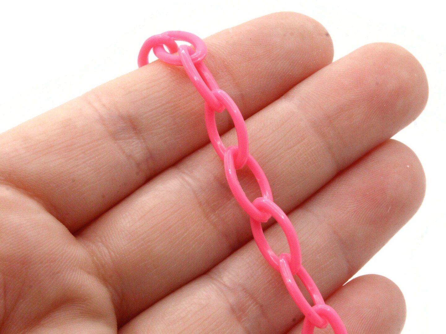 15.75 Inch Hot Pink Plastic Oval Chain - 40cm chain - 13x8mm links