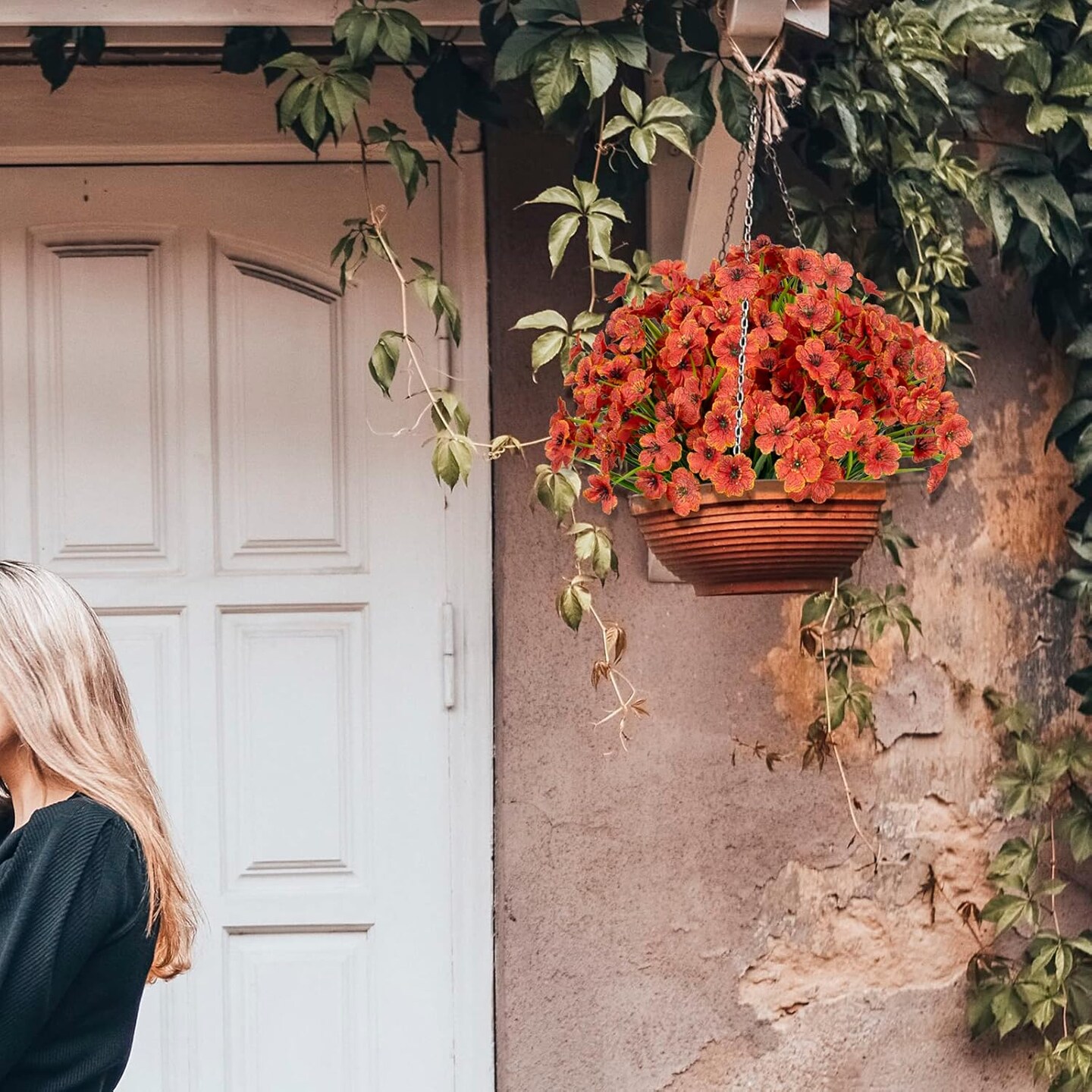 15-Bundle Artificial Outdoor Flowers – UV-Resistant Faux Plastic and Silk Plants for Window Boxes, Garden, Porch, and Home Décor (Orange)