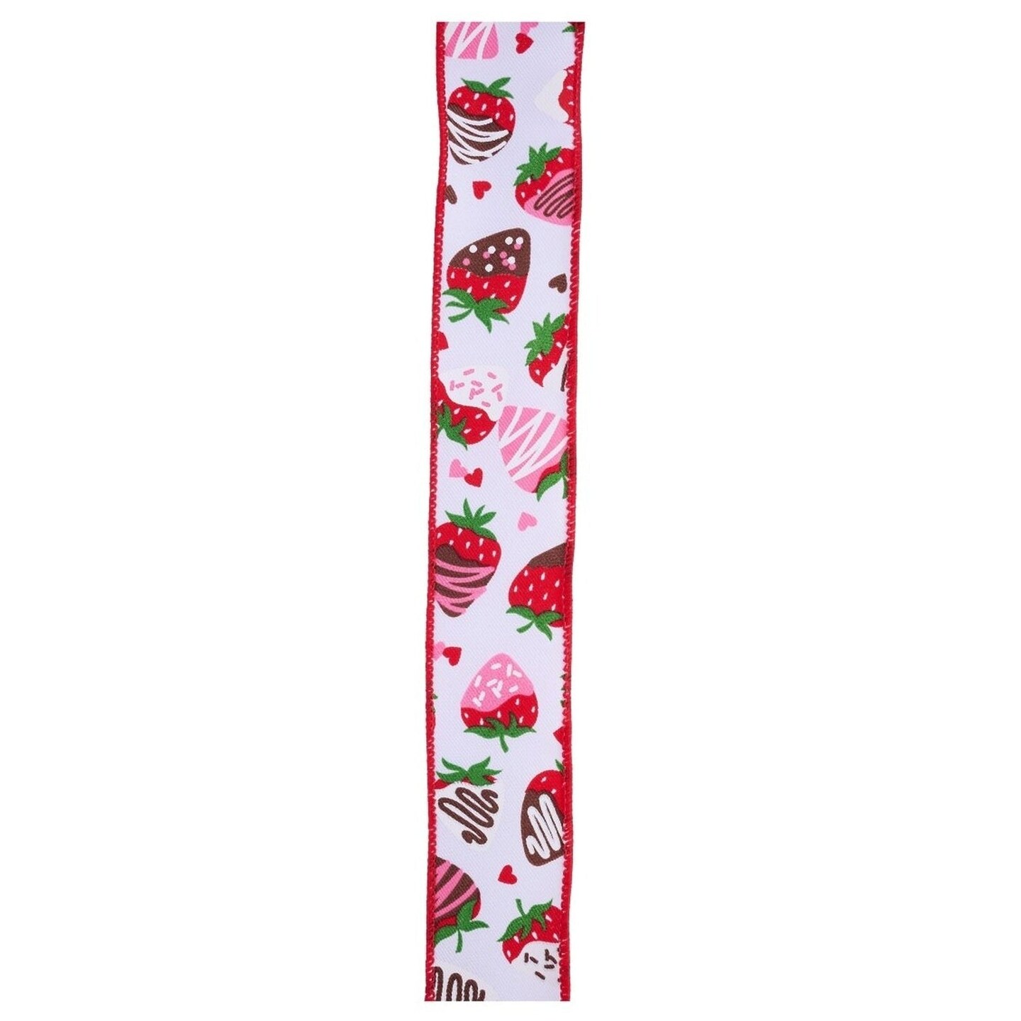 1.5in Chocolate Covered Strawberries Ribbon: White (10 Yards)