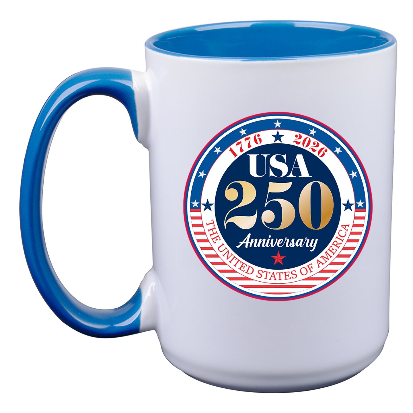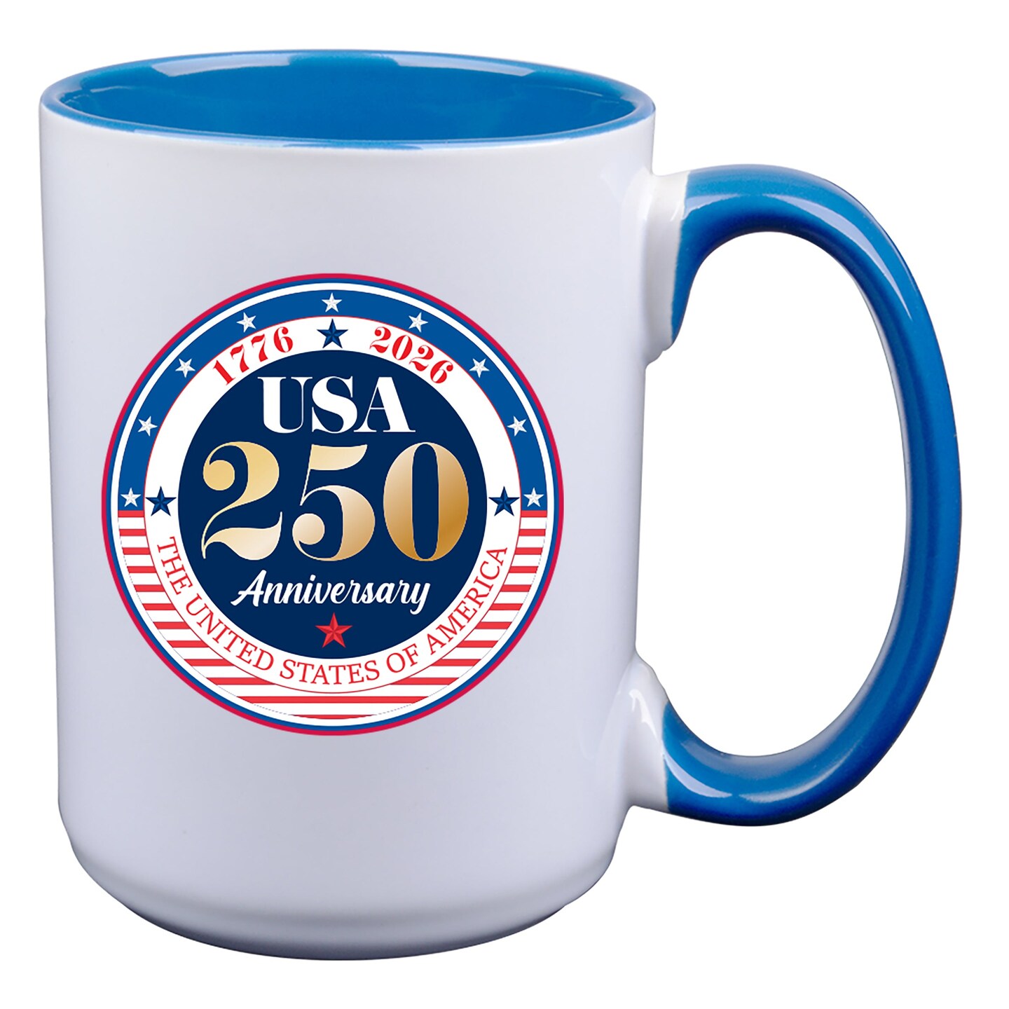 15oz White Mug with Blue I/C, 250 Year Anniversary