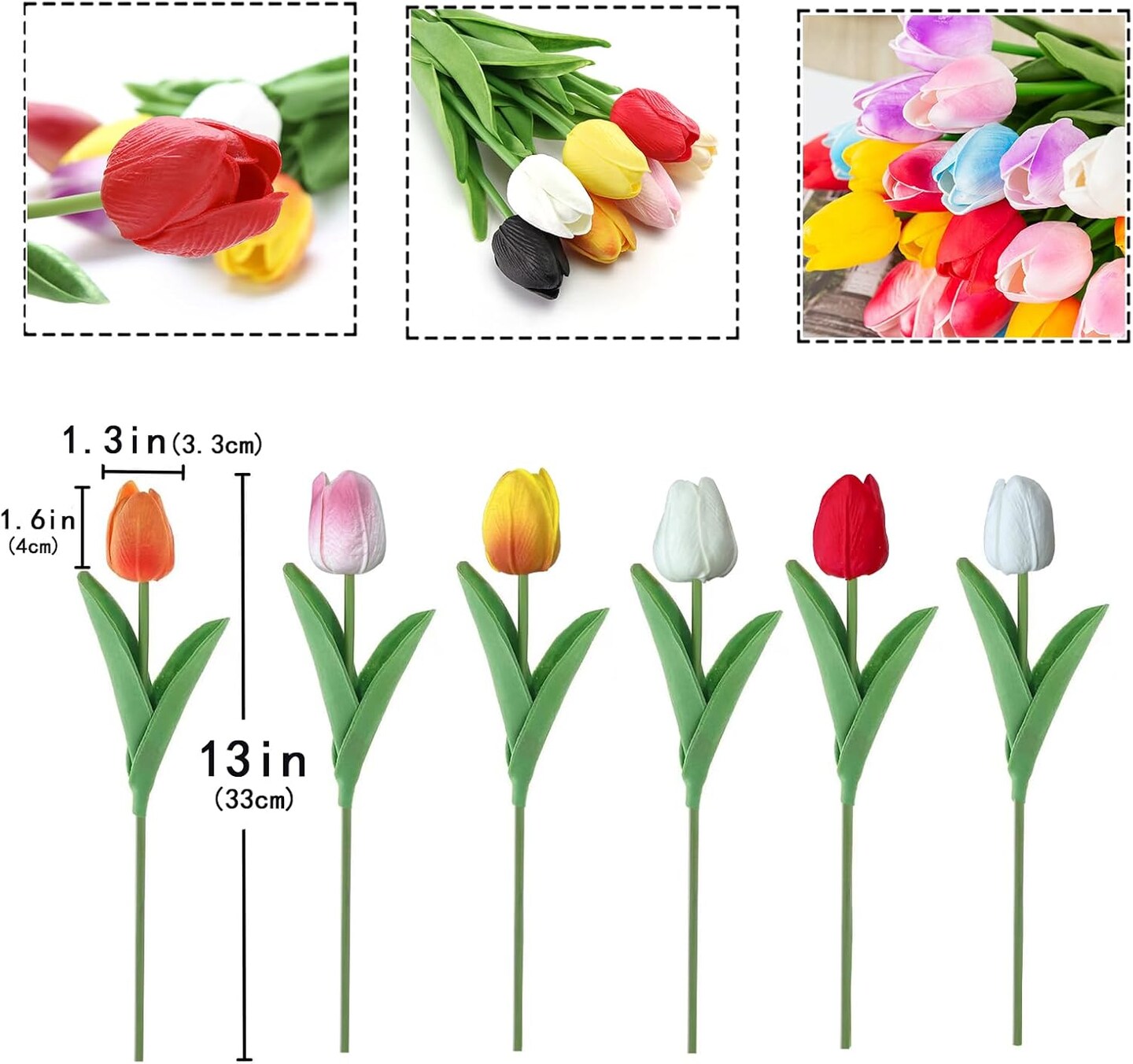 15PCS Real Touch Artificial Tulips – 14" PU Silk Faux Flowers for Home, Wedding & Party Decorations (Colorful)