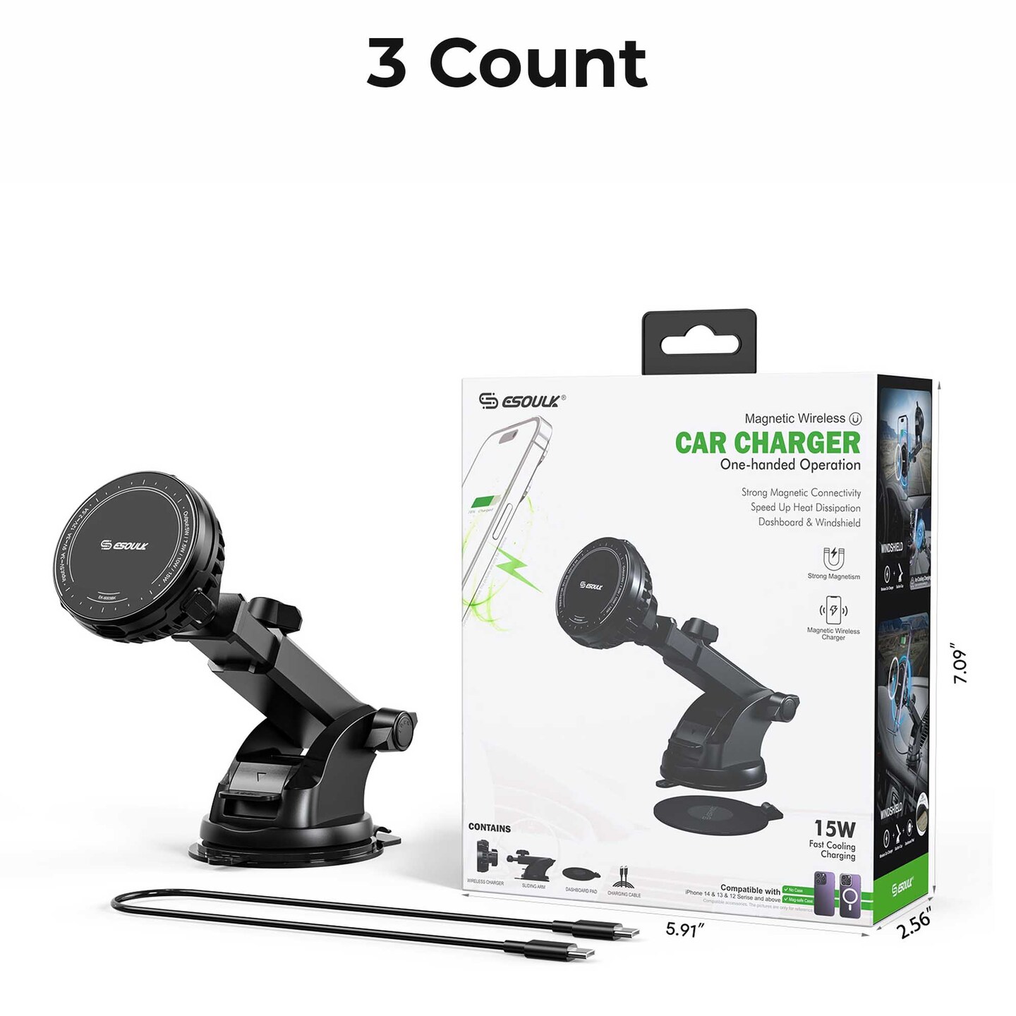 15W Cooling Magnetic Wireless Charging Car Mount (12/24)