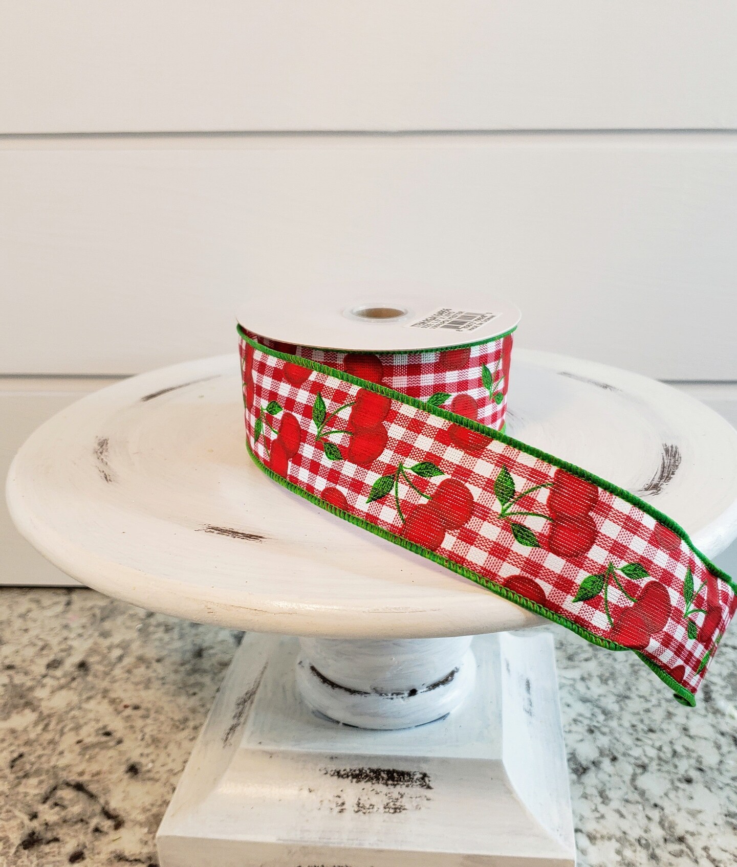 1.5"x10YD Cherries on Gingham Check Ribbon - Playful Charm in Red, White, and Green-RGA164956