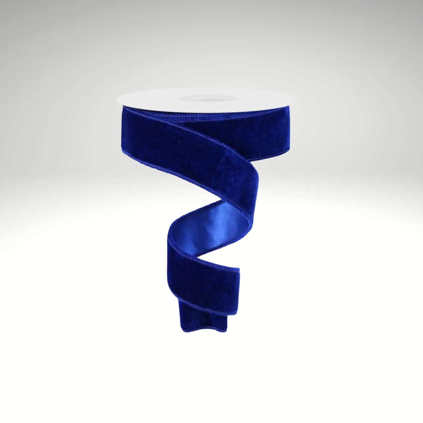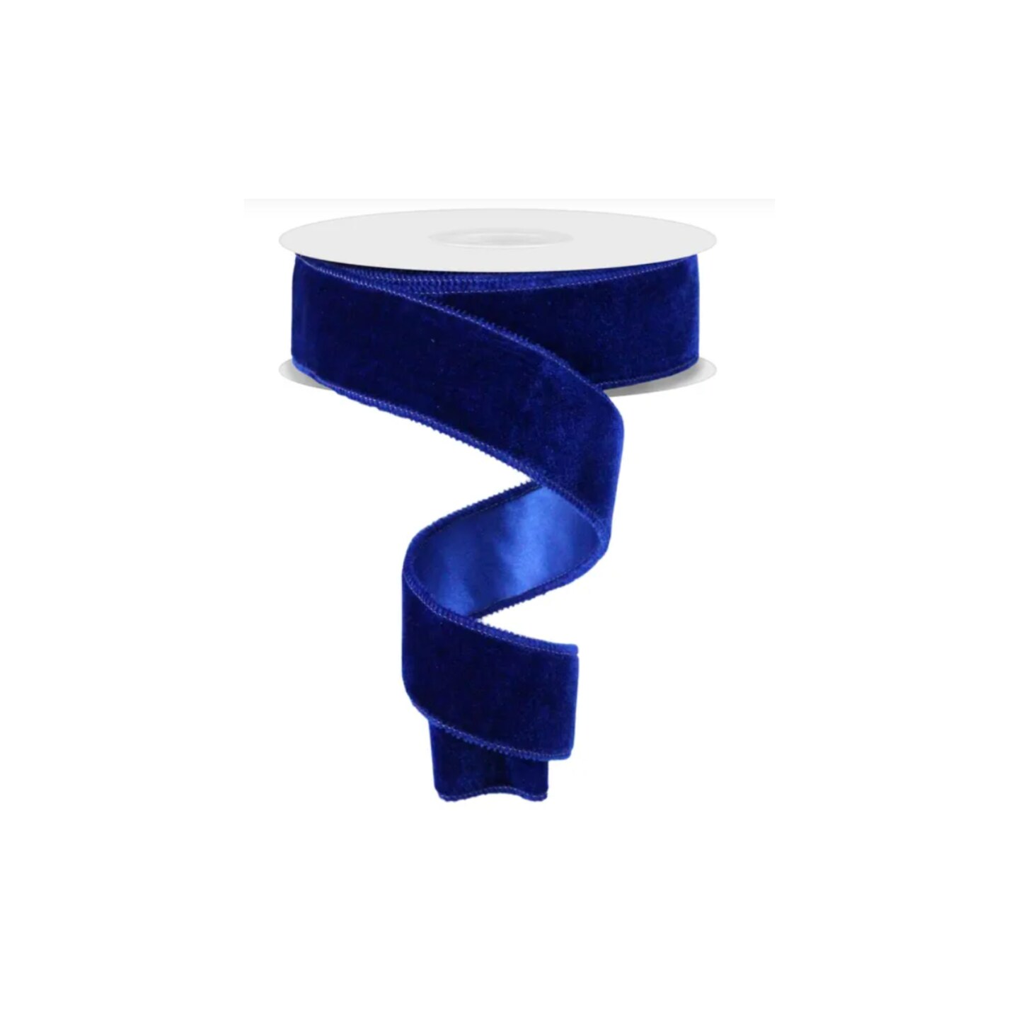 1.5"x10yd Royal Blue Velvet Wired Ribbon – Deluxe Velvet with Satin Backing-RGE165825