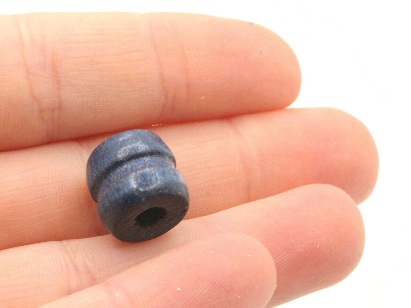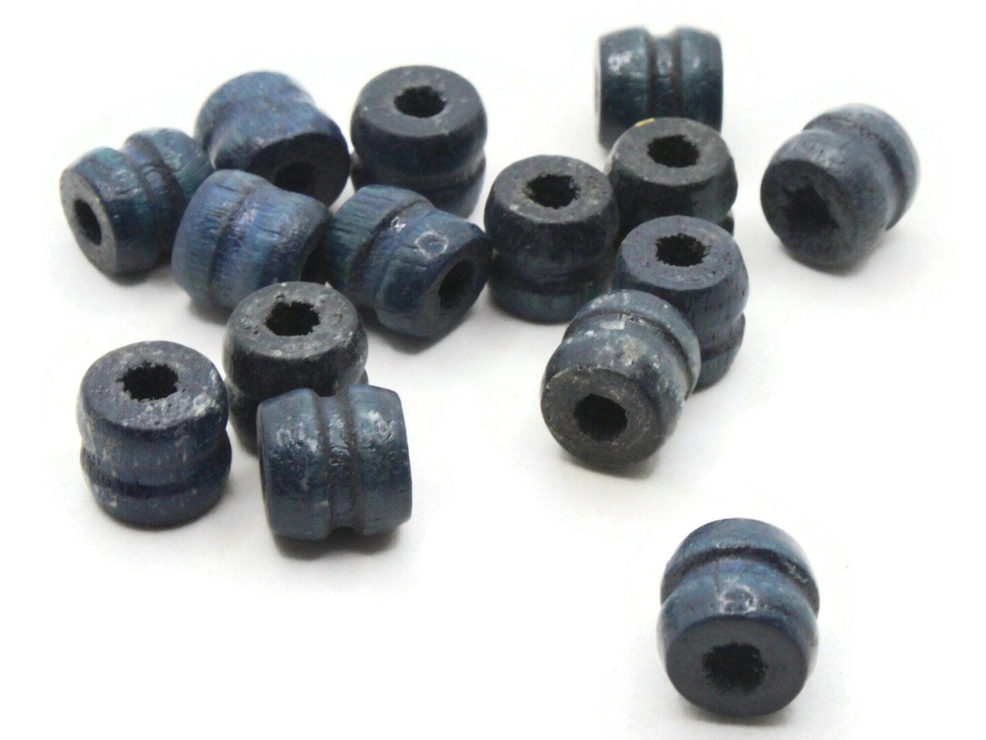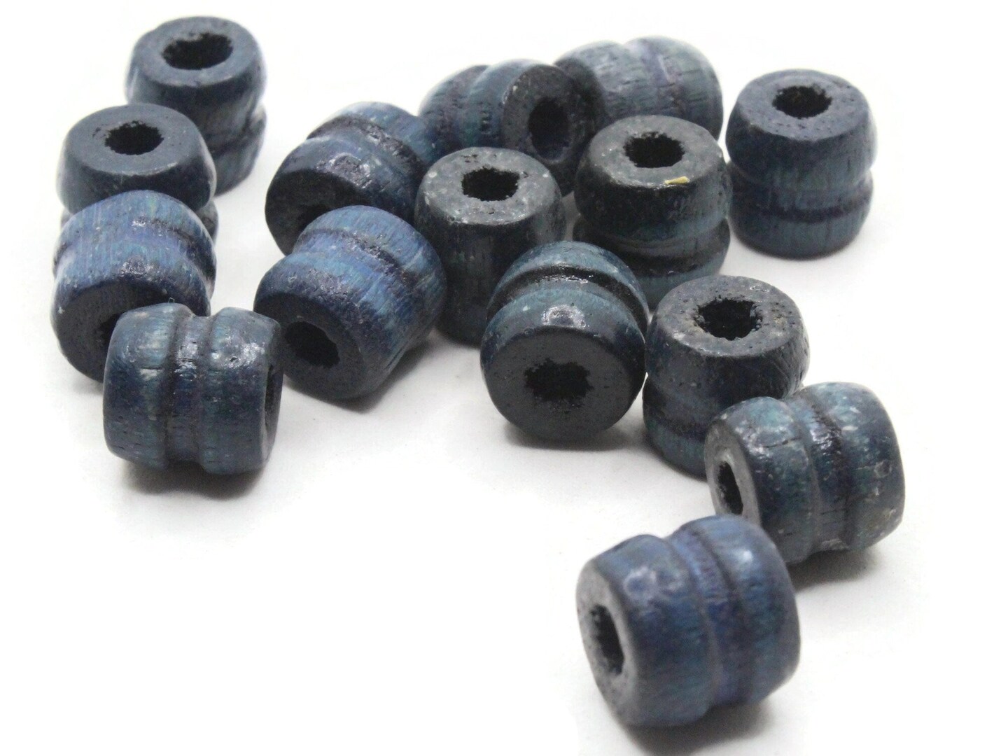 16 11mm Blue Fluted Barrel Large Hole Wood Macrame Beads