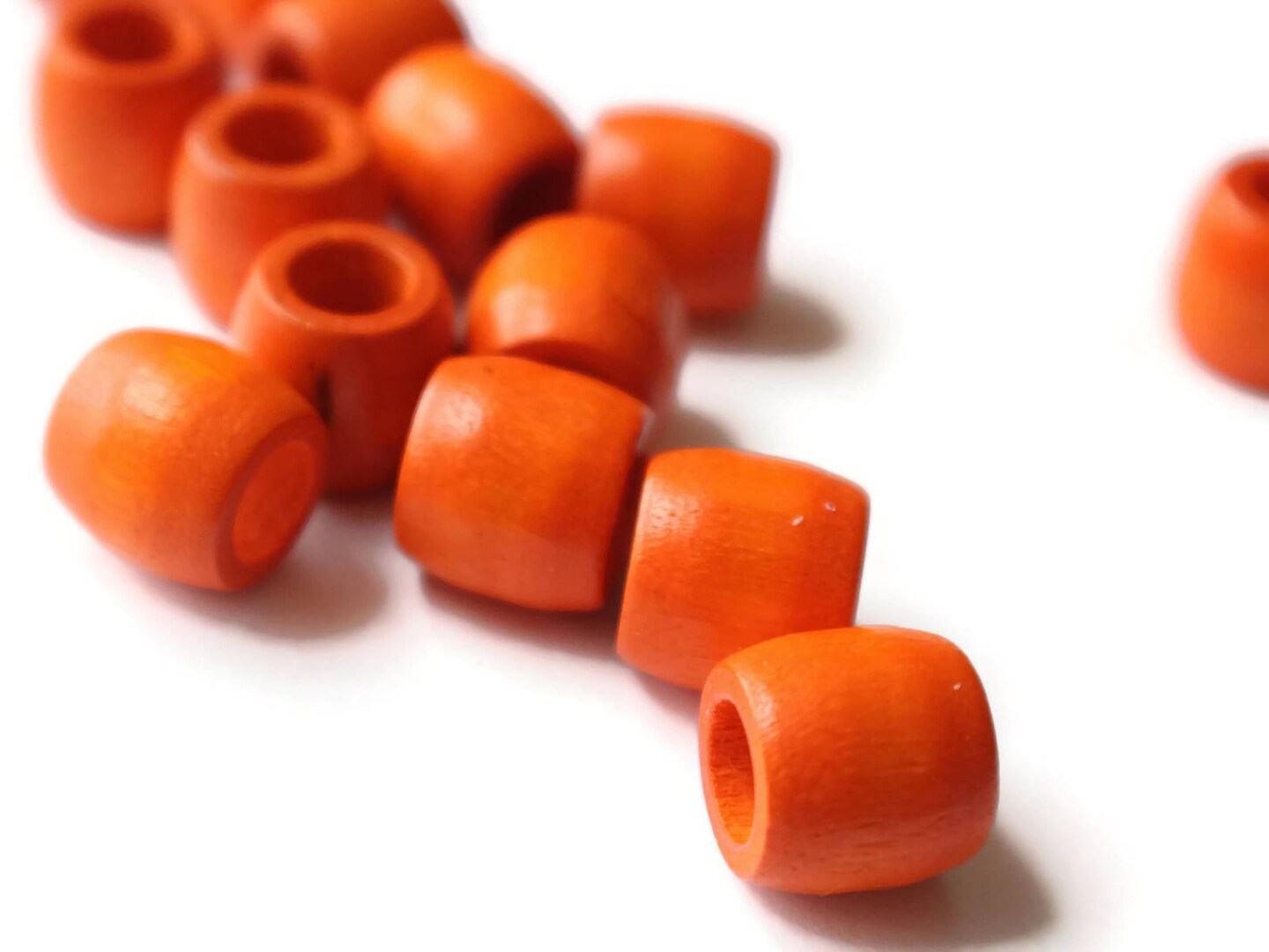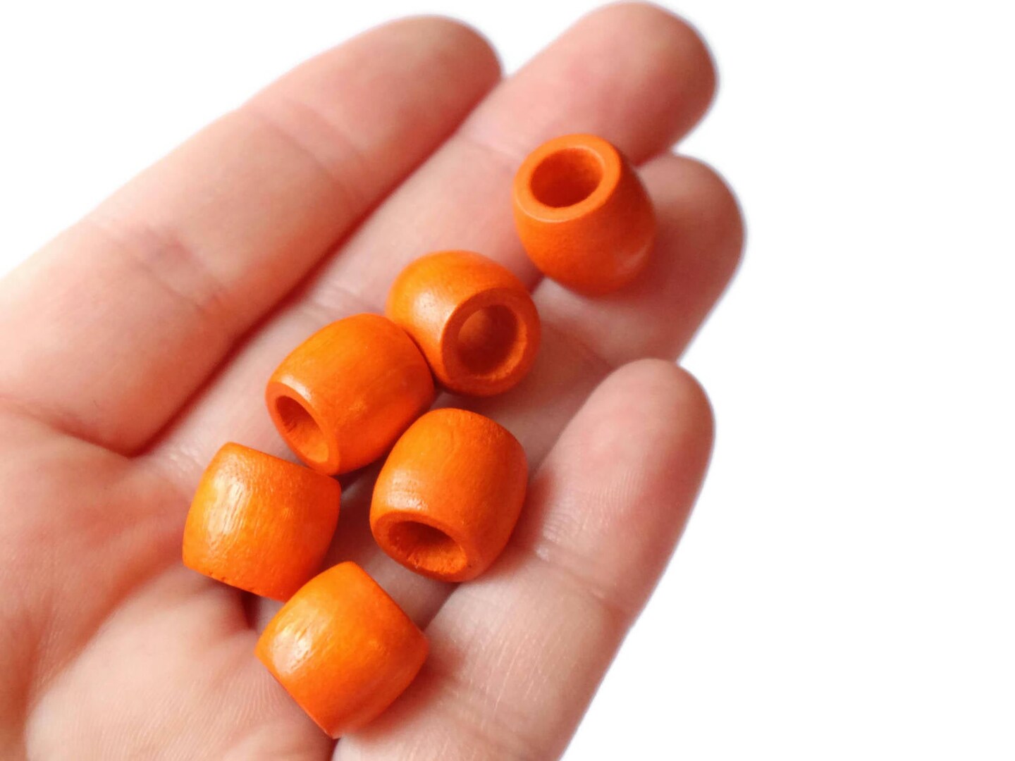 16 12mm Orange Wood Barrel Beads Vintage Wooden Macrame Tube Beads Large Hole Loose Beads