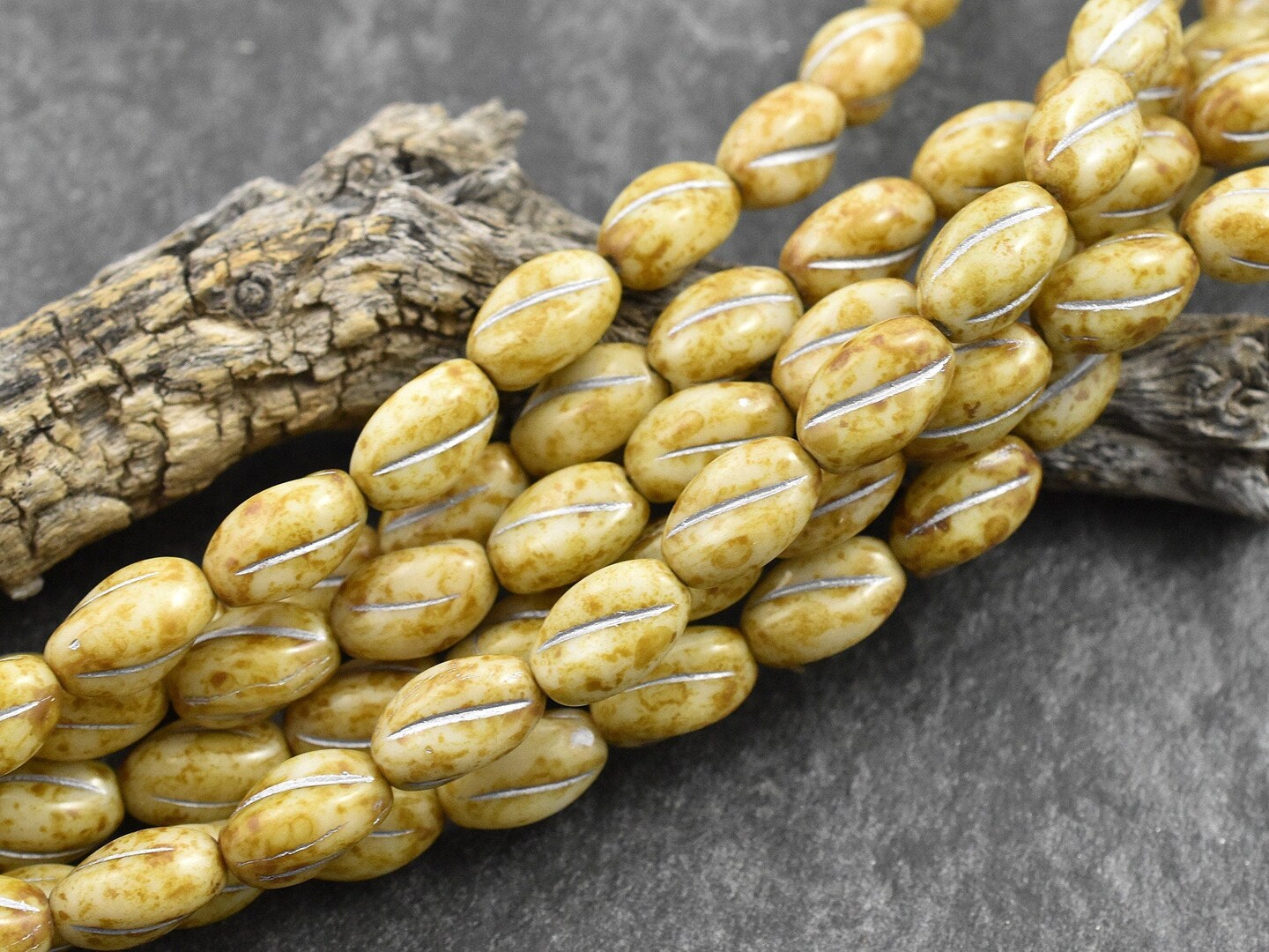 *16* 8x11mm Silver Washed Alabaster Picasso Coffee Bean Oval Beads