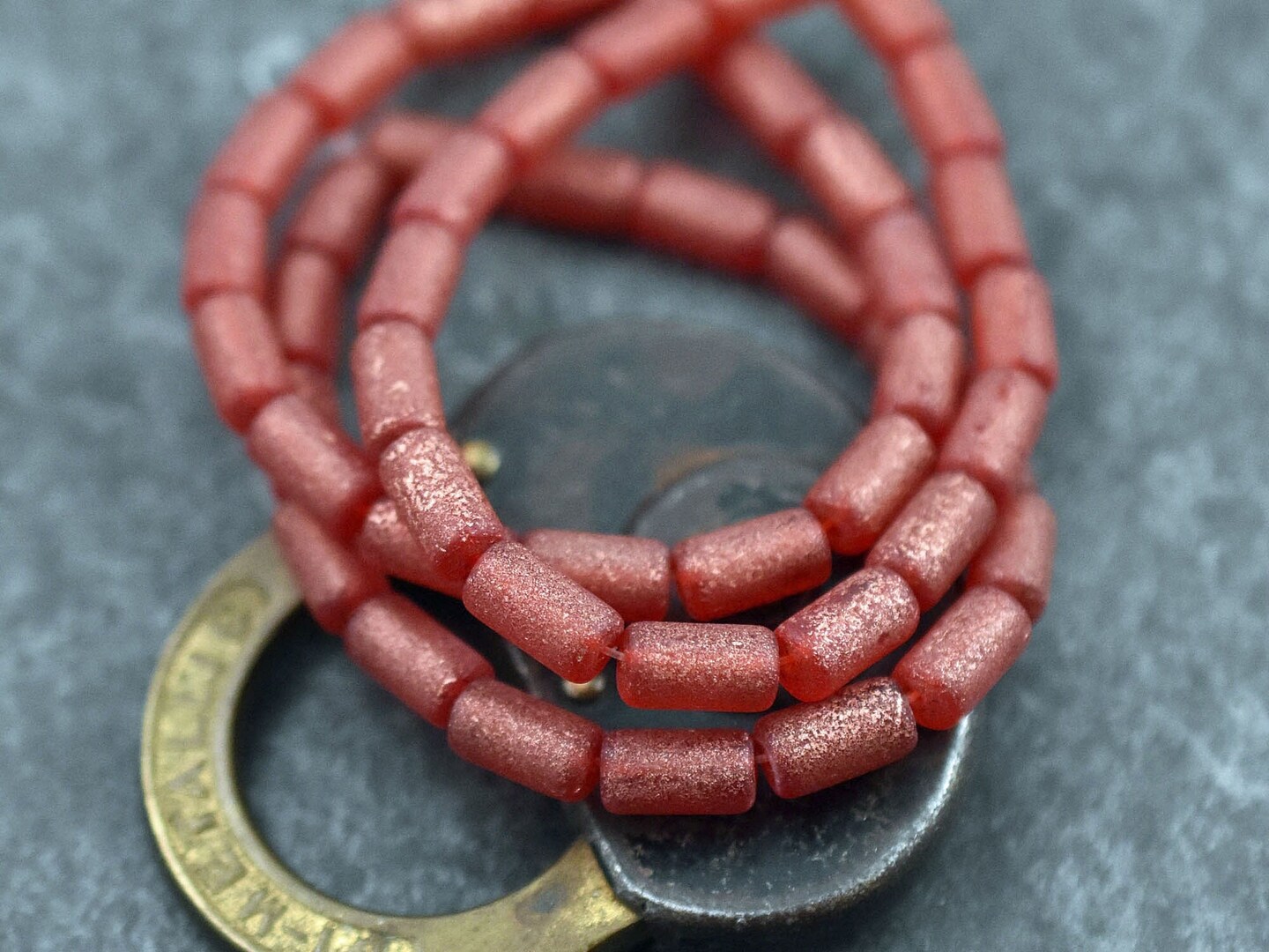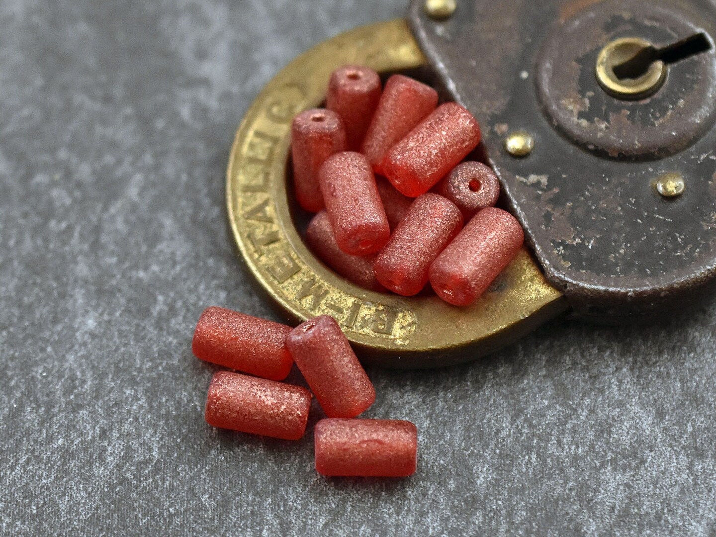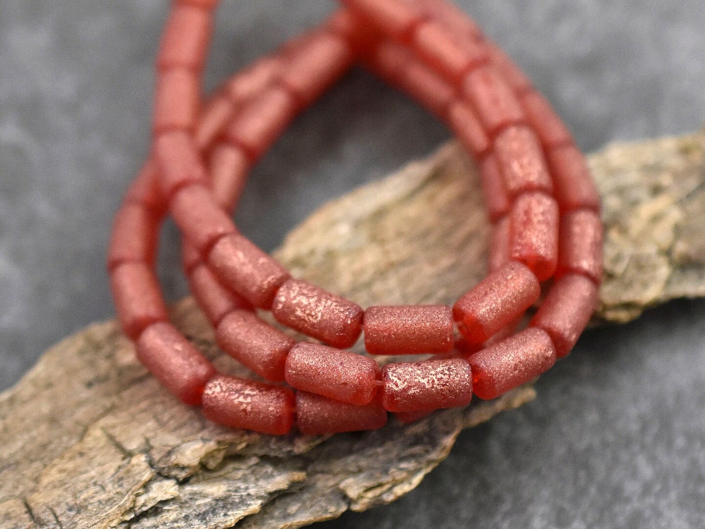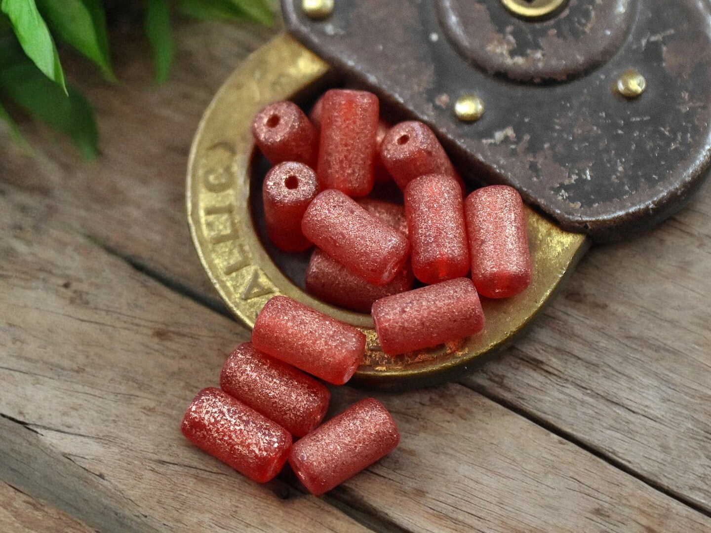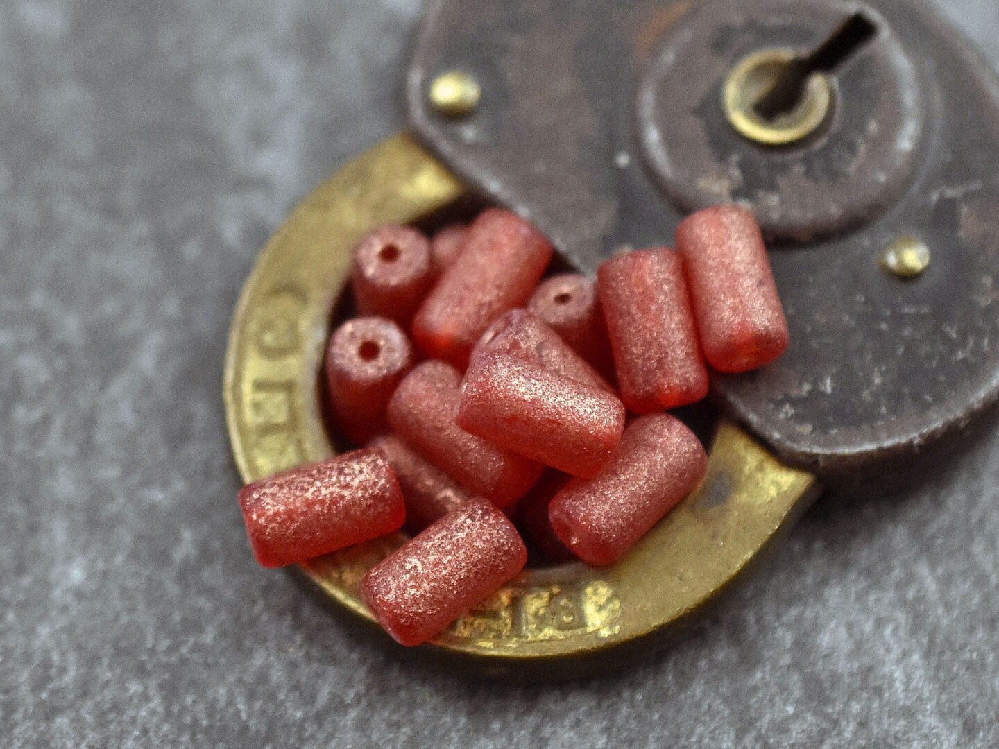 *16* 9x5mm Copper Washed Etched Ruby Red Tube Beads