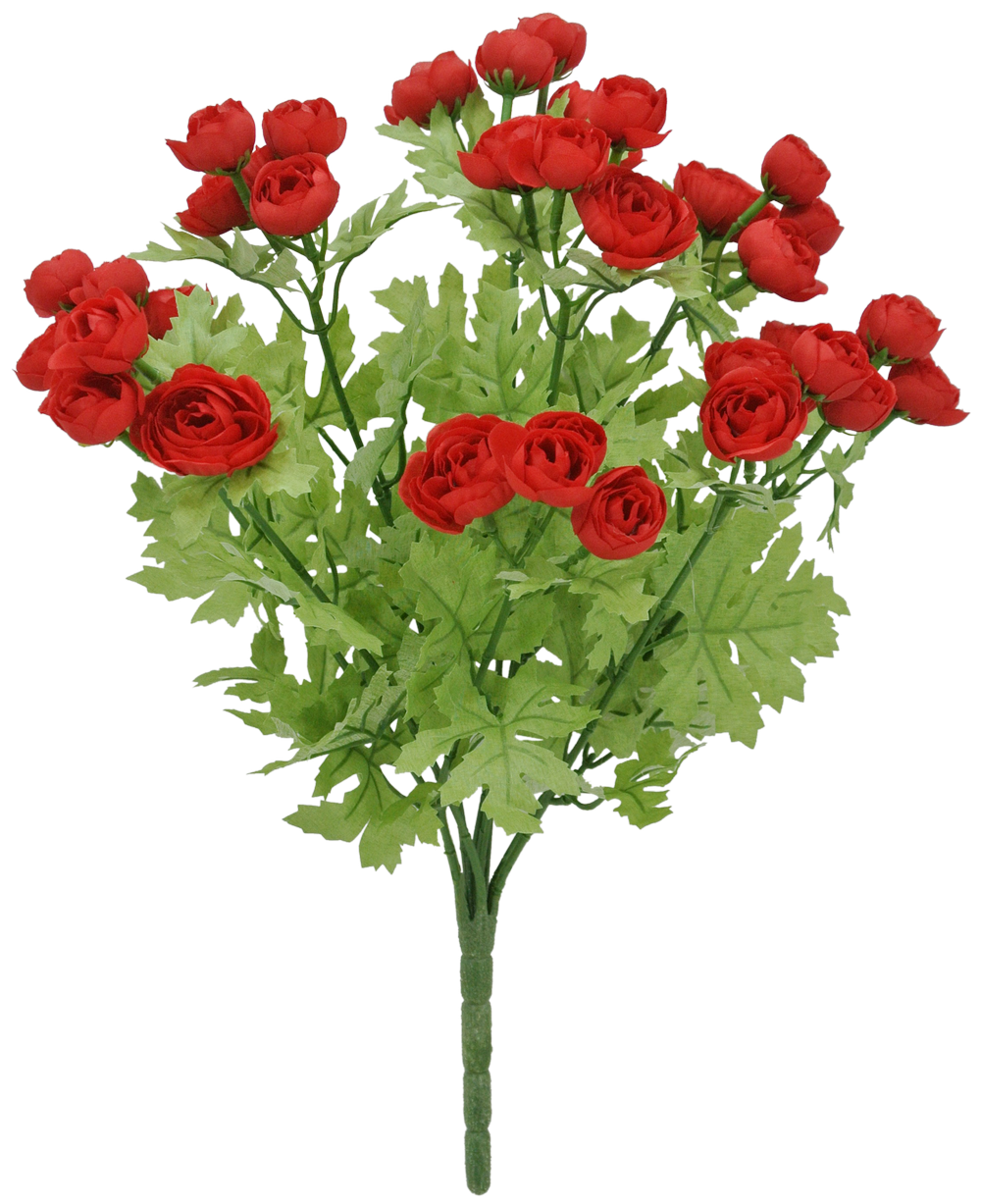 16" Artificial Red Mini Ranunculus Bush – Faux Floral Bouquet for Wedding Bouquets, Centerpieces & Home Décor-84055-RD