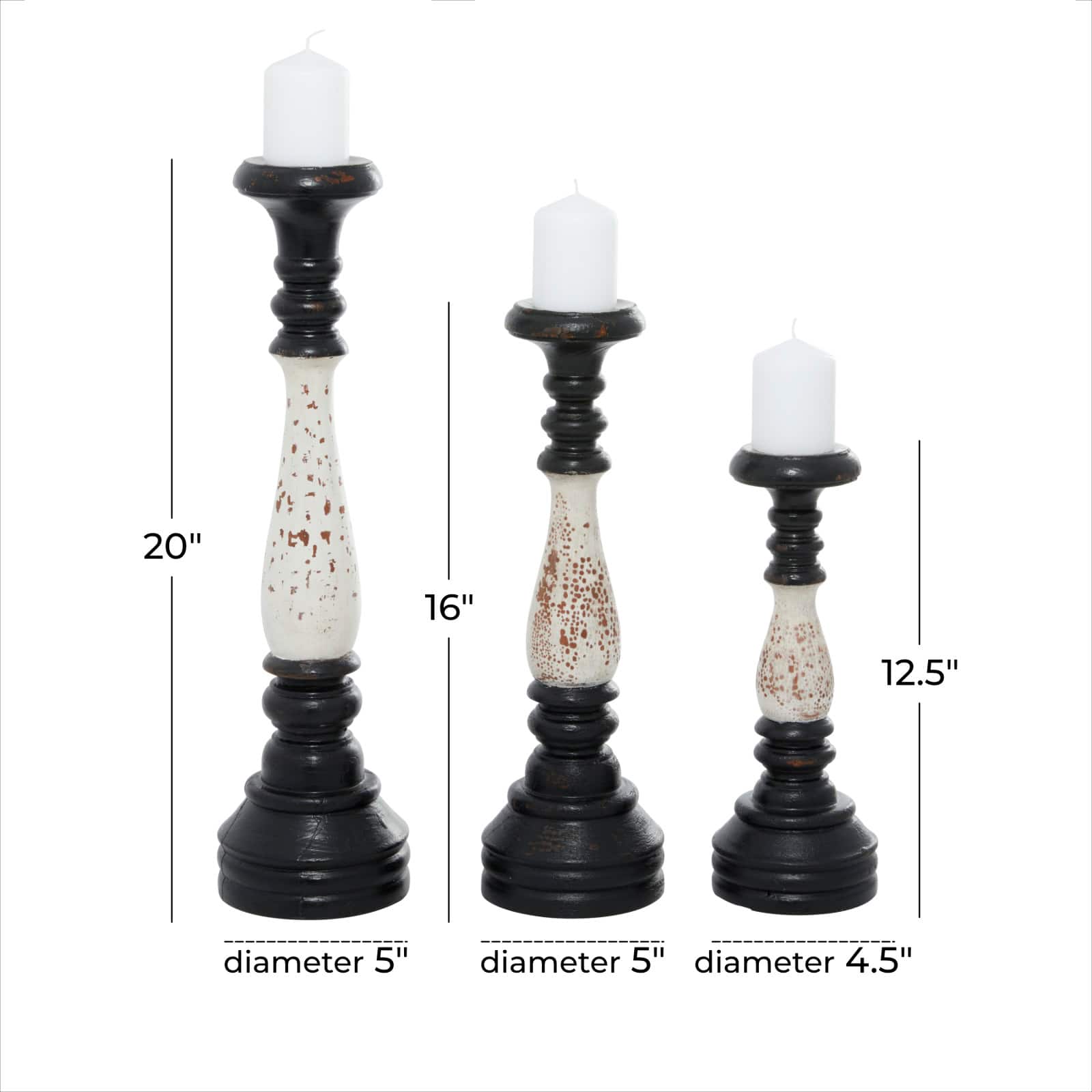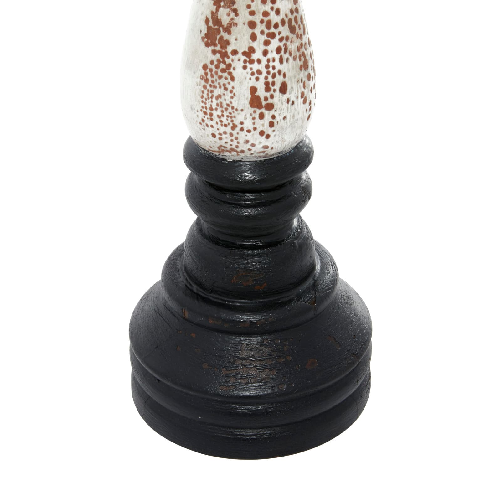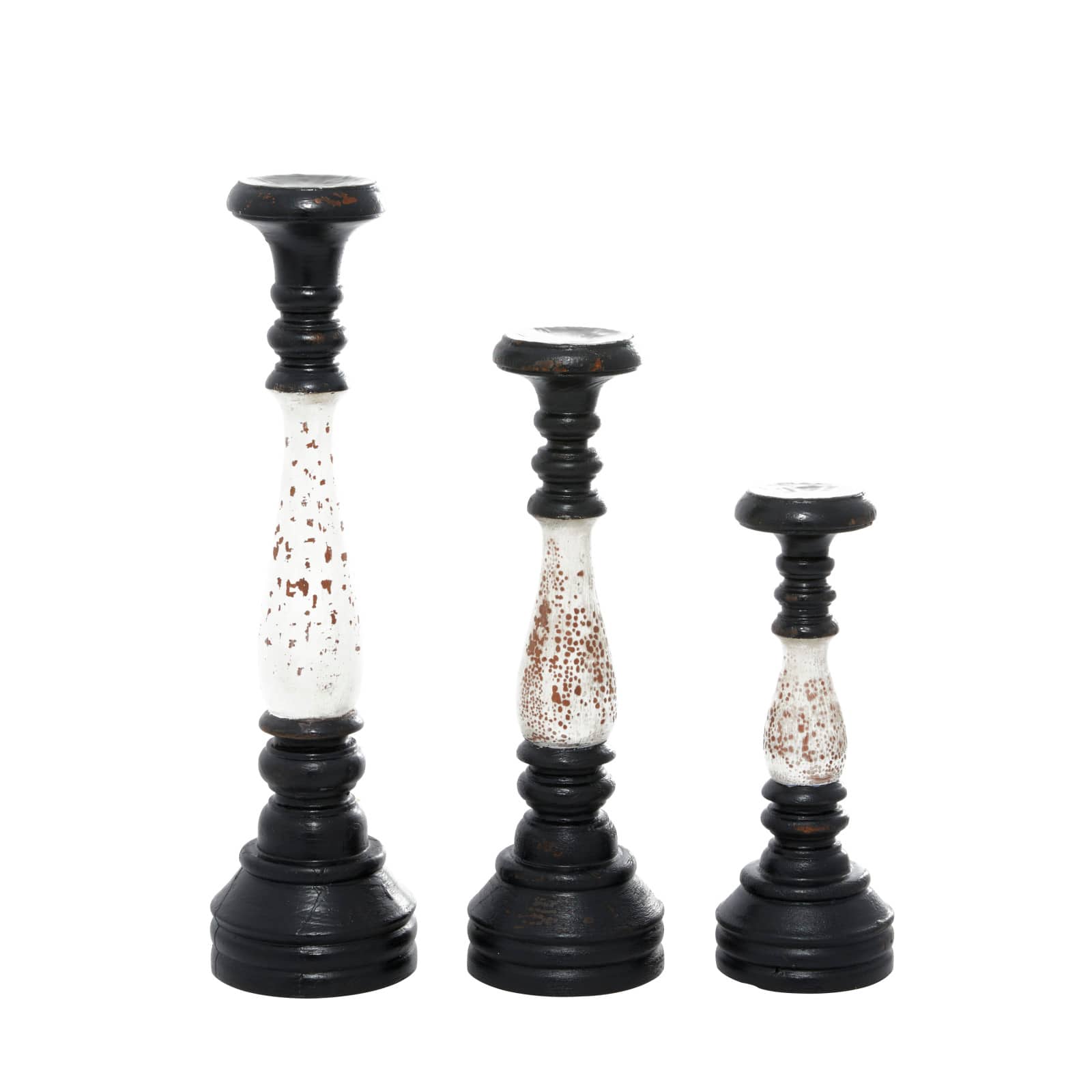 16" Black & White Wood Farmhouse Candlestick Holder Set