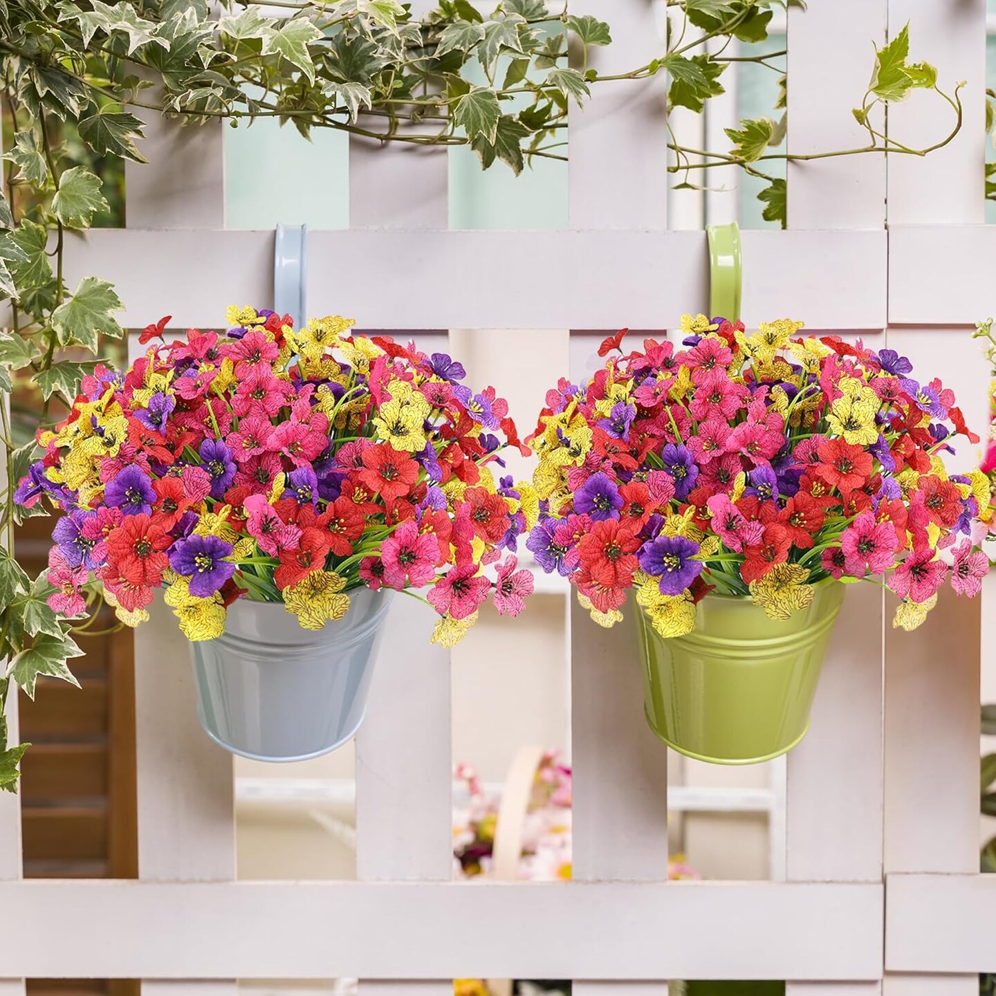 16 Bundles Colorful Artificial Spring Flowers for Outdoor Planters, Garden & Window Boxes (4 Colors)