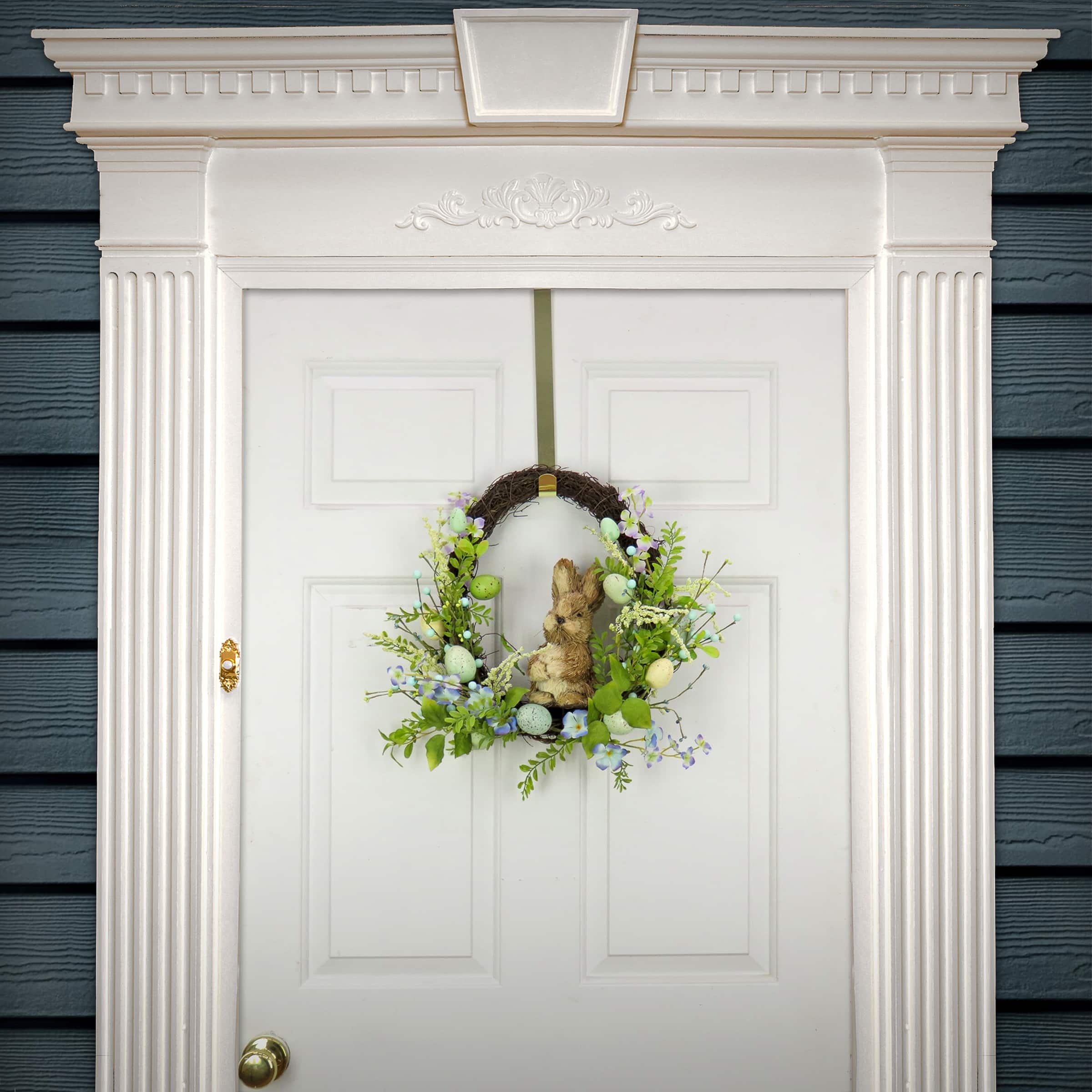 16" Bunny with Blue & Green Easter Eggs Wreath