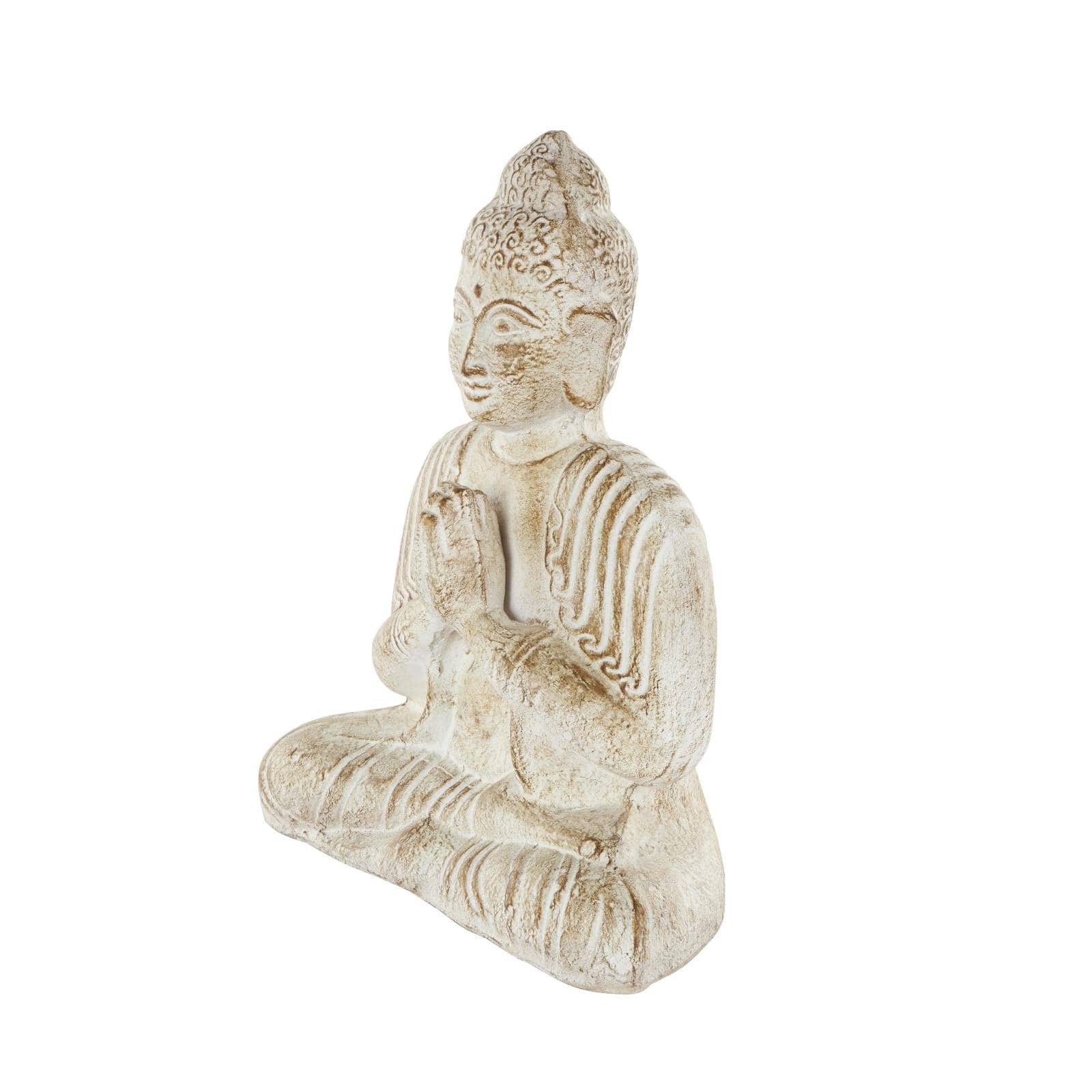 16" Cream & Brown Distressed Handmade Paper Mache Buddha Sculpture