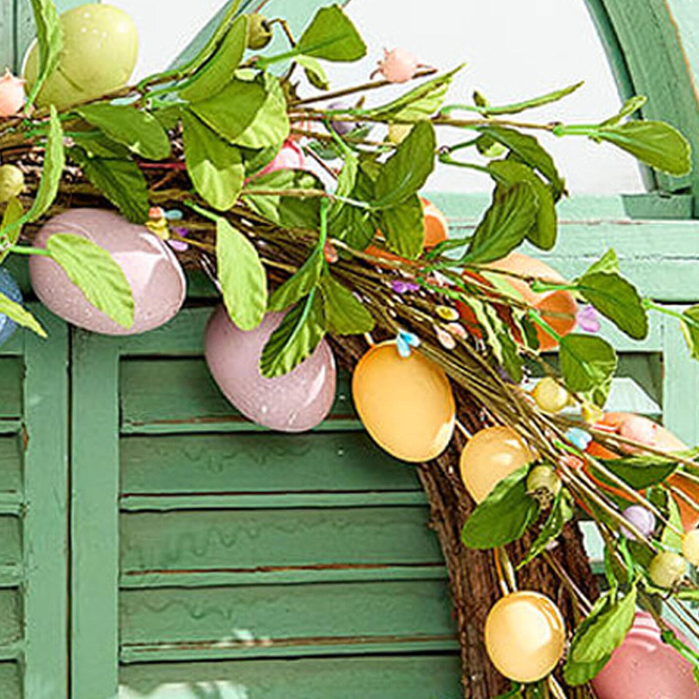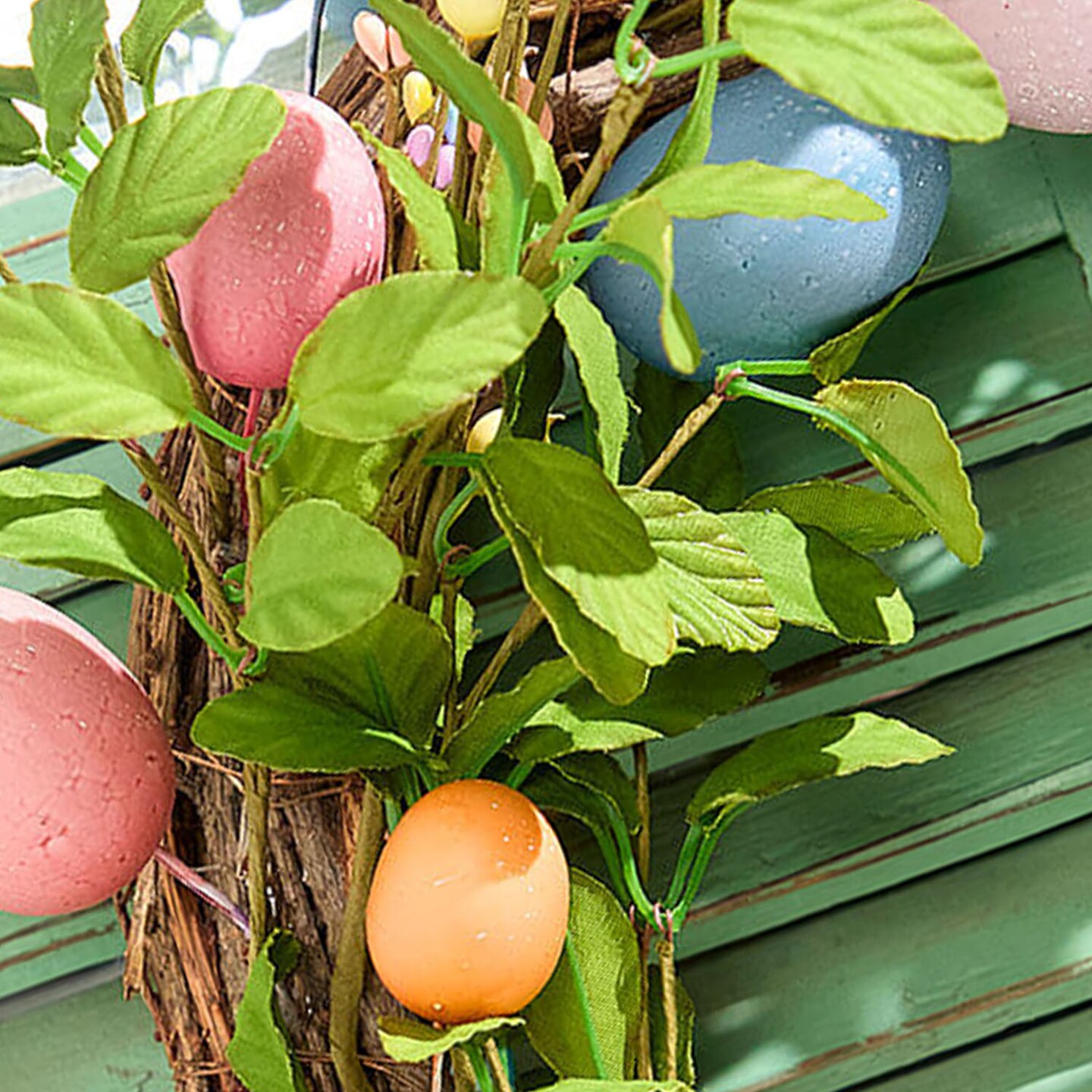 16" Easter Egg Wreath Spring Front Door Decor with Pastel Eggs and Floral Accents