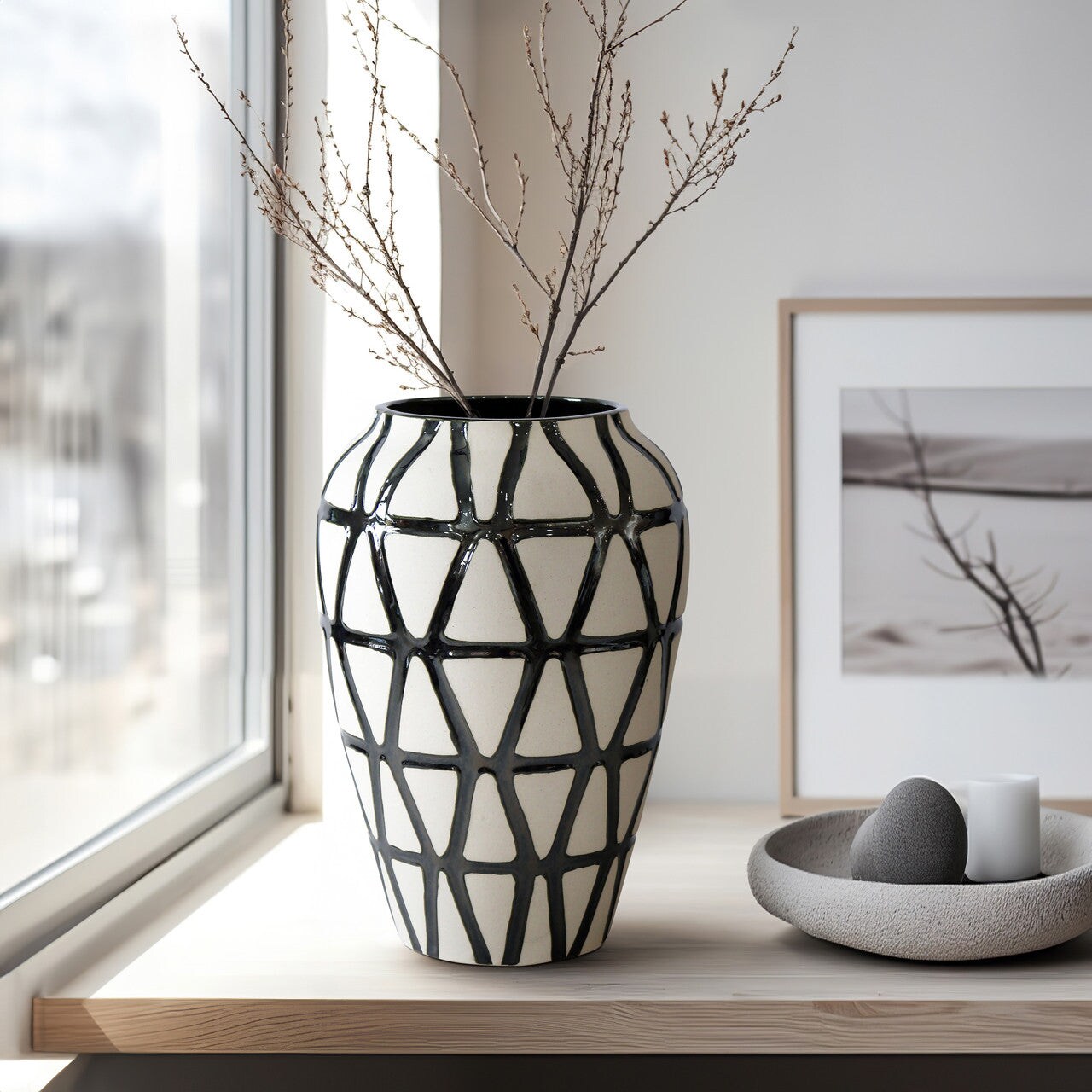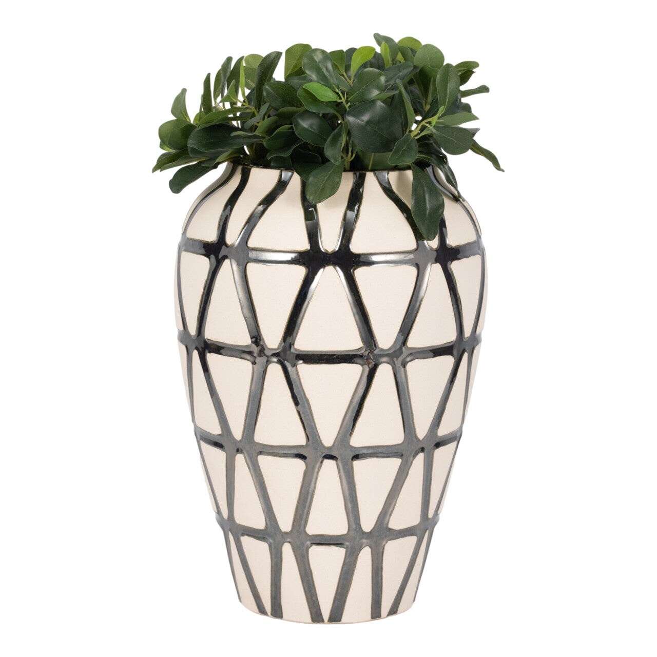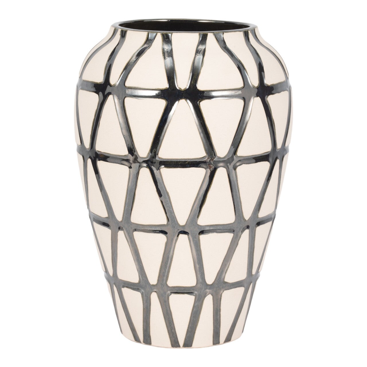 16" FABIOLA OVERSIZED TRIBAL CLAY MULTICOLORED VASE, PEWTER