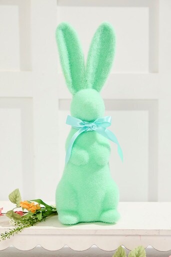 16" Flocked Bunny with Ribbon