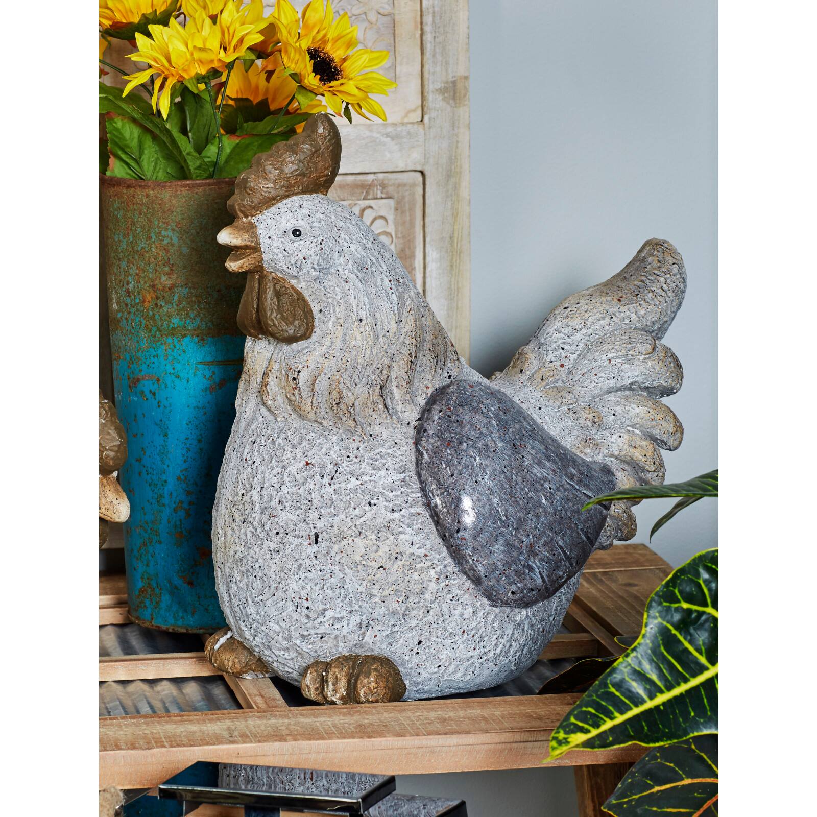 16" Gray Stone Country Hen Garden Sculpture