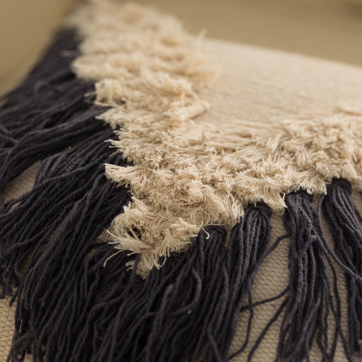 16" Handwoven Cotton Throw Pillow Cover with Embossed and Fringed Crossed line