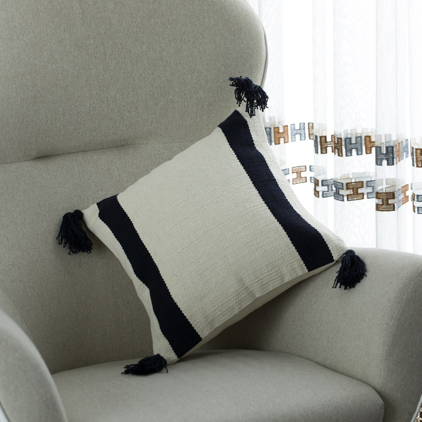 16" Handwoven Cotton Throw Pillow Cover with Side Stripes
