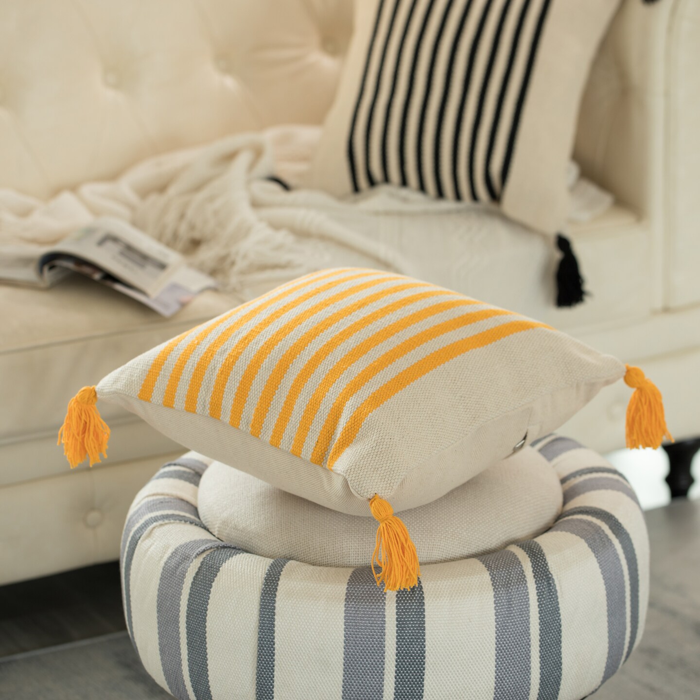 16" Handwoven Cotton Throw Pillow Cover with Striped Lines, Black