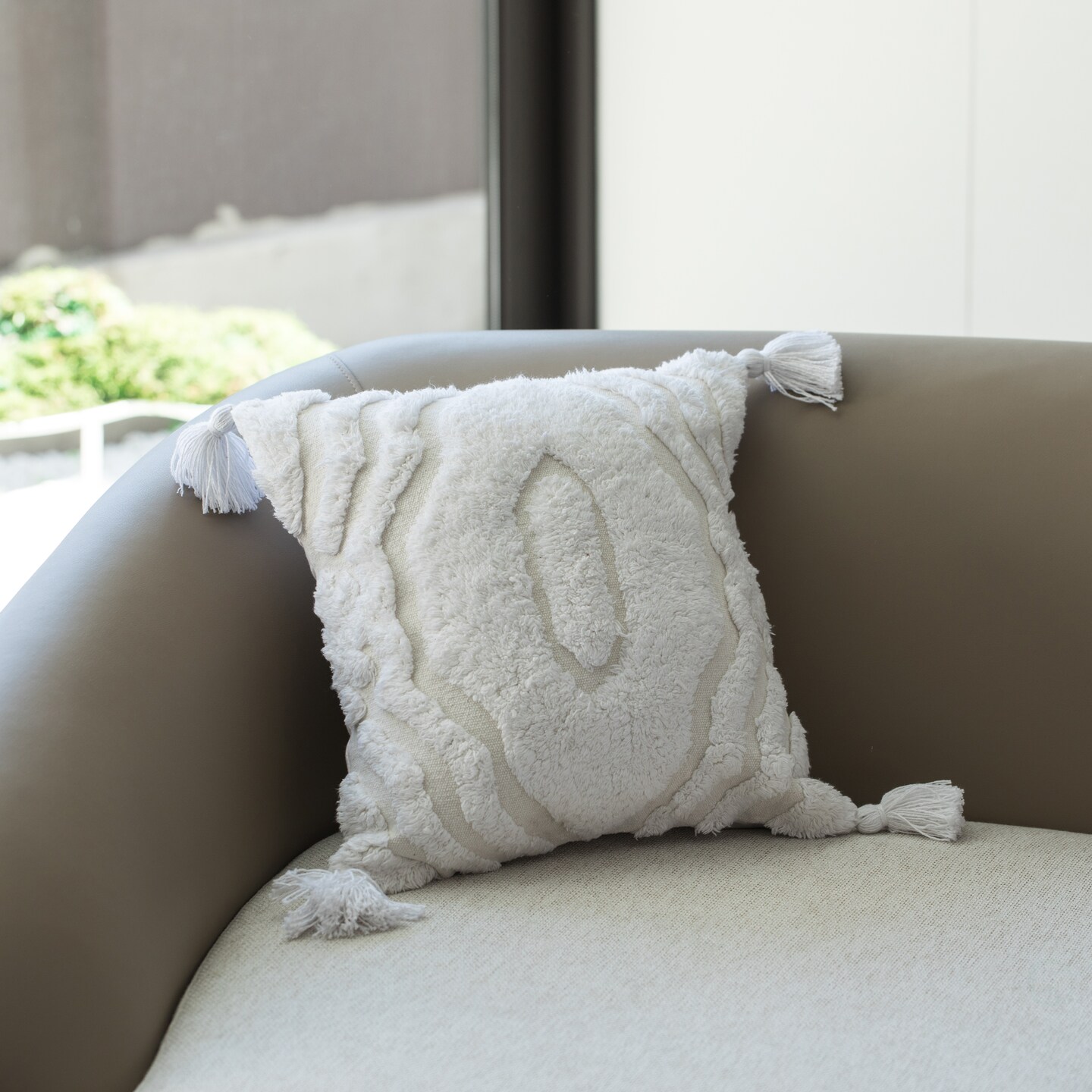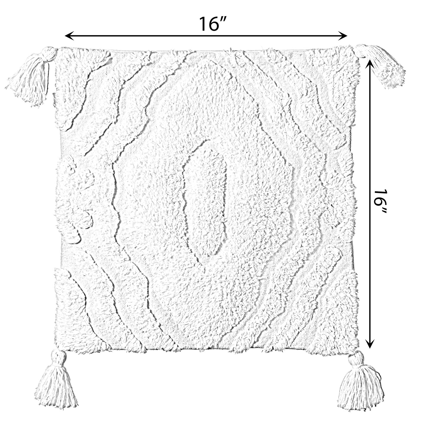 16" Handwoven Cotton Throw Pillow Cover with White on White Tufted Design and Tassel Corners