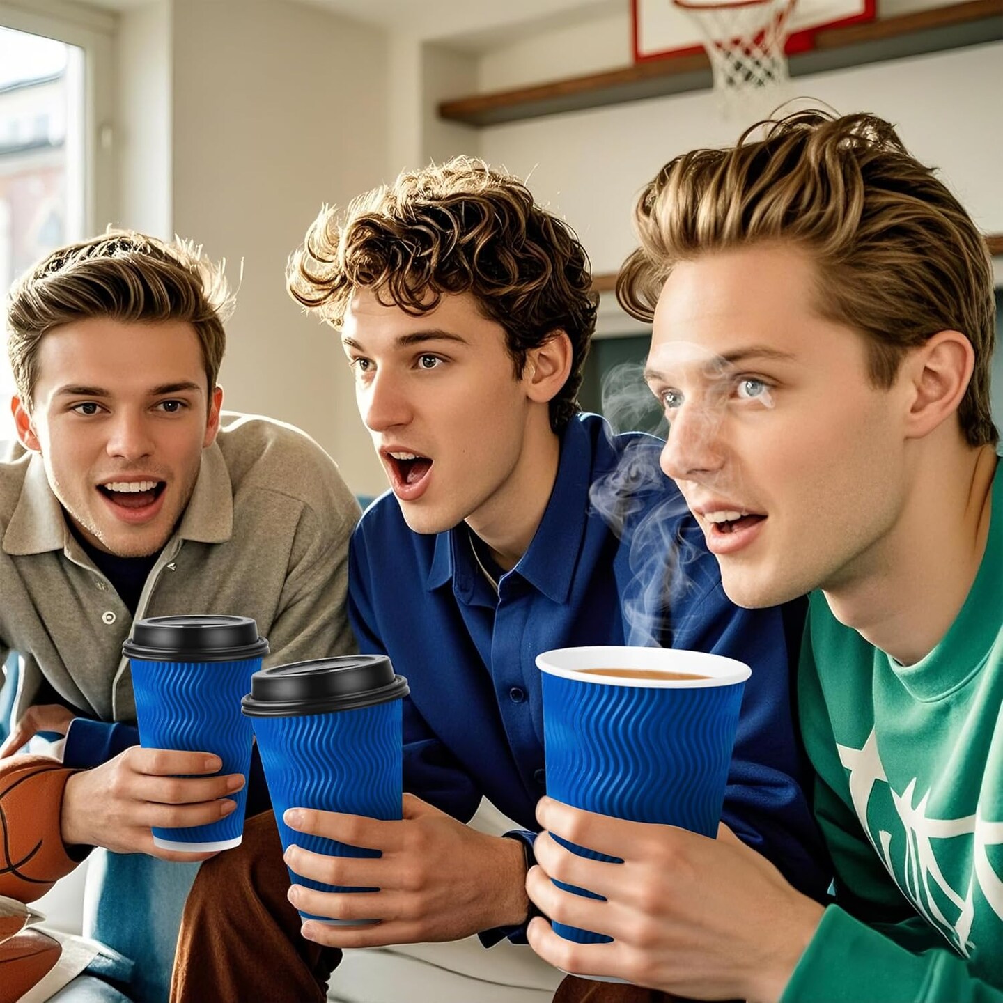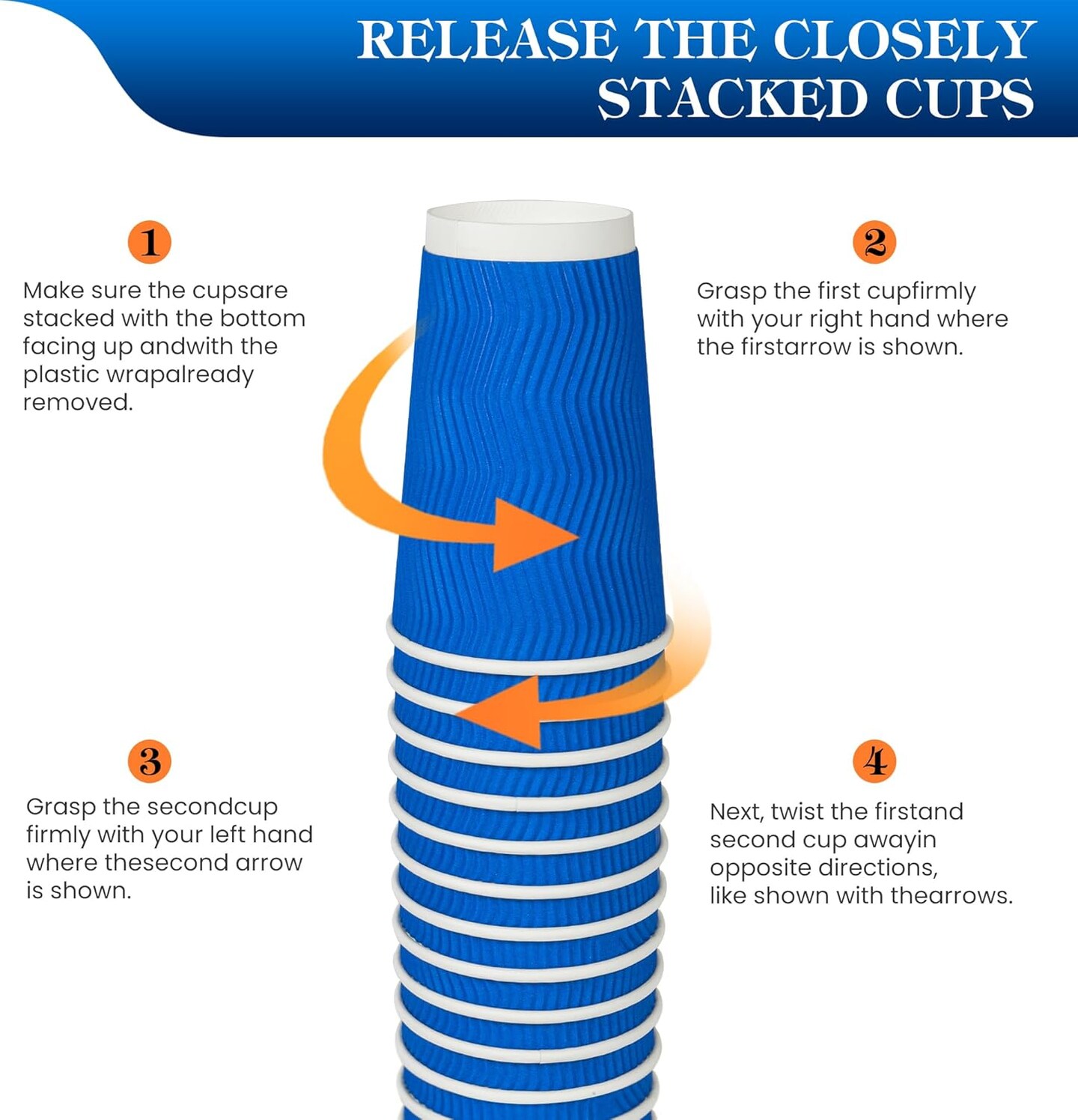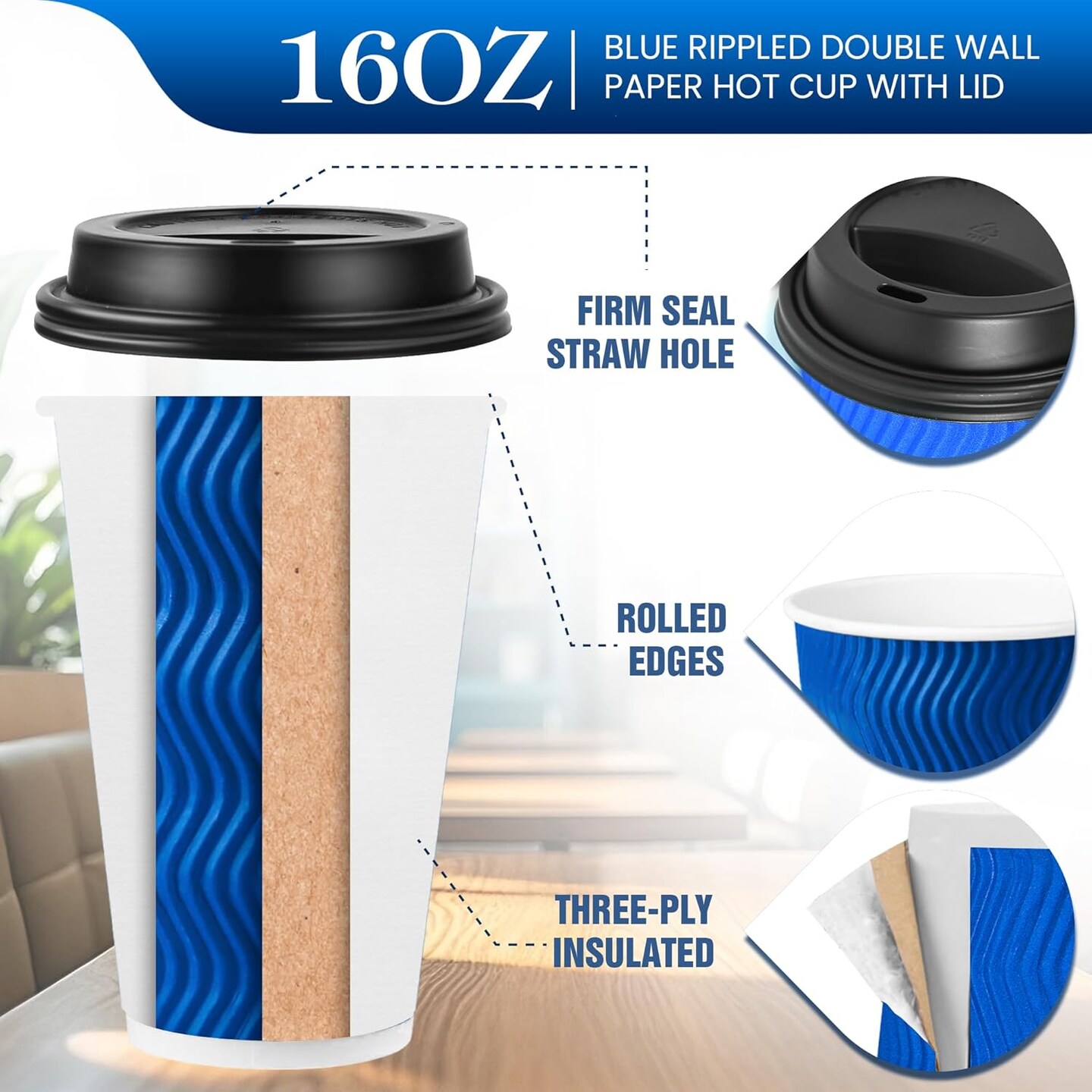 16 oz Paper Coffee Cups with Lids 60 Pack, Disposable Double Insulated Wall Ripple To Go Travel Hot Beverage Cups (Navy)