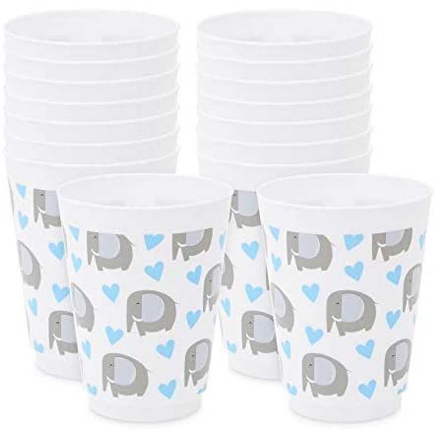 16 oz Plastic Tumbler Cups, Blue Elephant for Boys Baby Shower Theme (16 Pack)