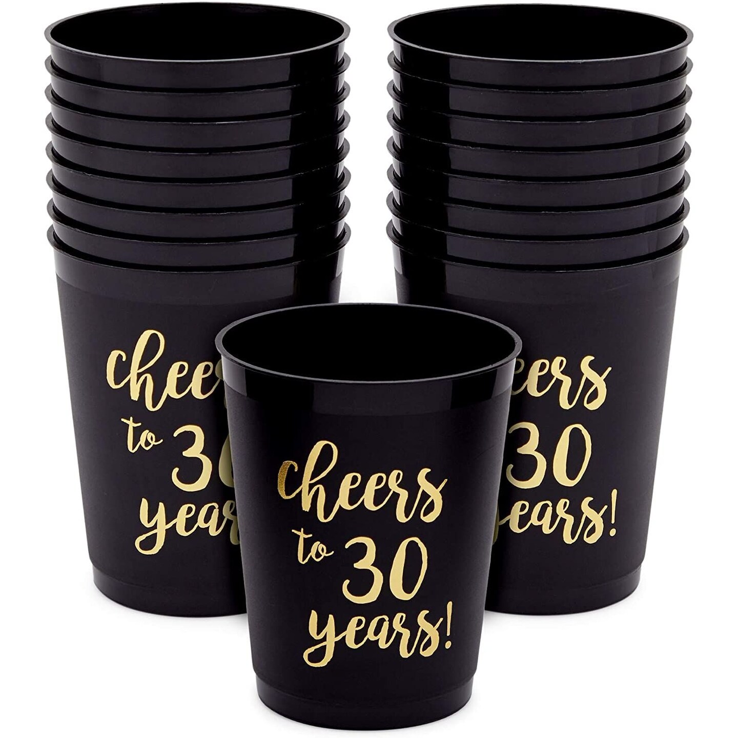 16 Pack Black 30th Birthday Plastic Tumbler Cups 16 oz for Anniversary Party Supplies, Cheers to 30 Years