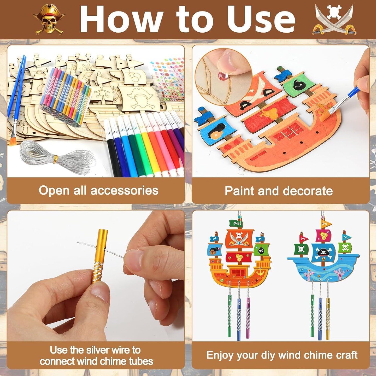 16 Pack Pirates Ship Wind Chime Kits