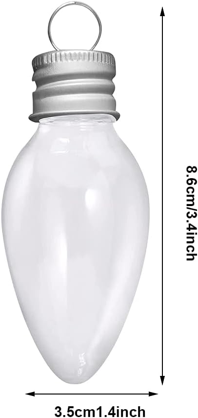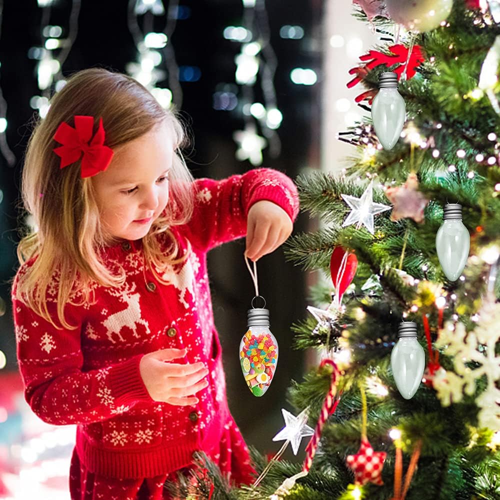 16 Packs 3.4 Inch Fillable Light Bulb Shape Clear Plastic Christmas Ornaments with Screw Off Cap and 1 roll of Red Snowflake Ribbon for DIY Crafts Christmas Tree Hanging Decoration