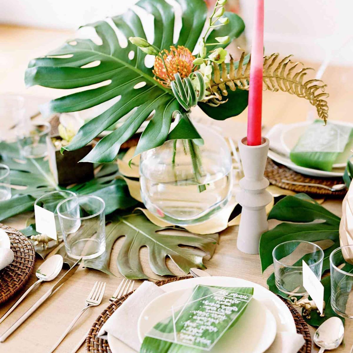 16 PCS Artificial Palm Leaf Place mat Leaves Table Runners