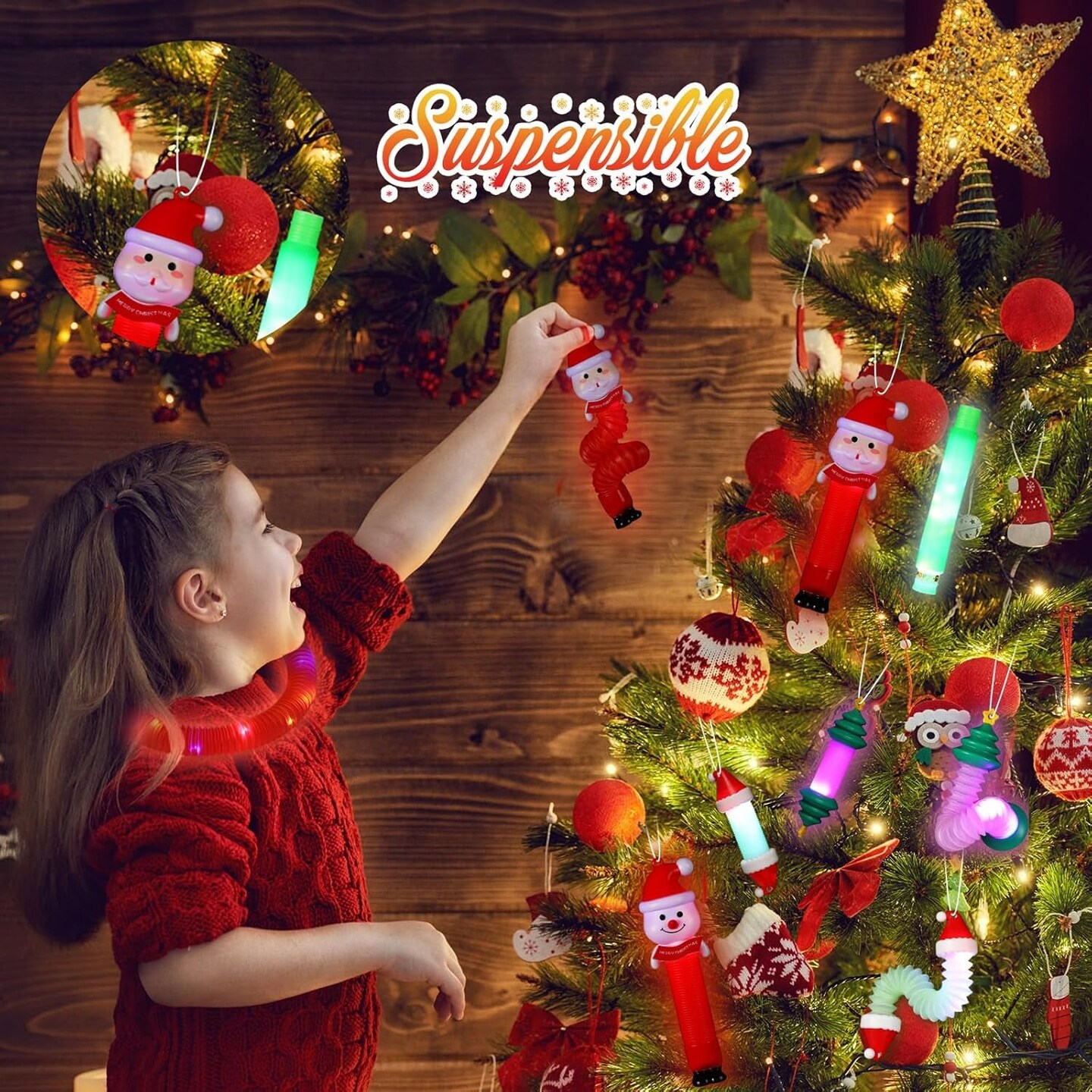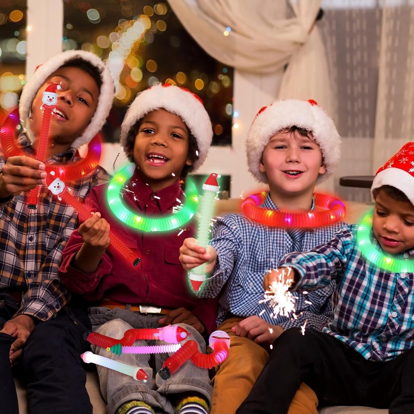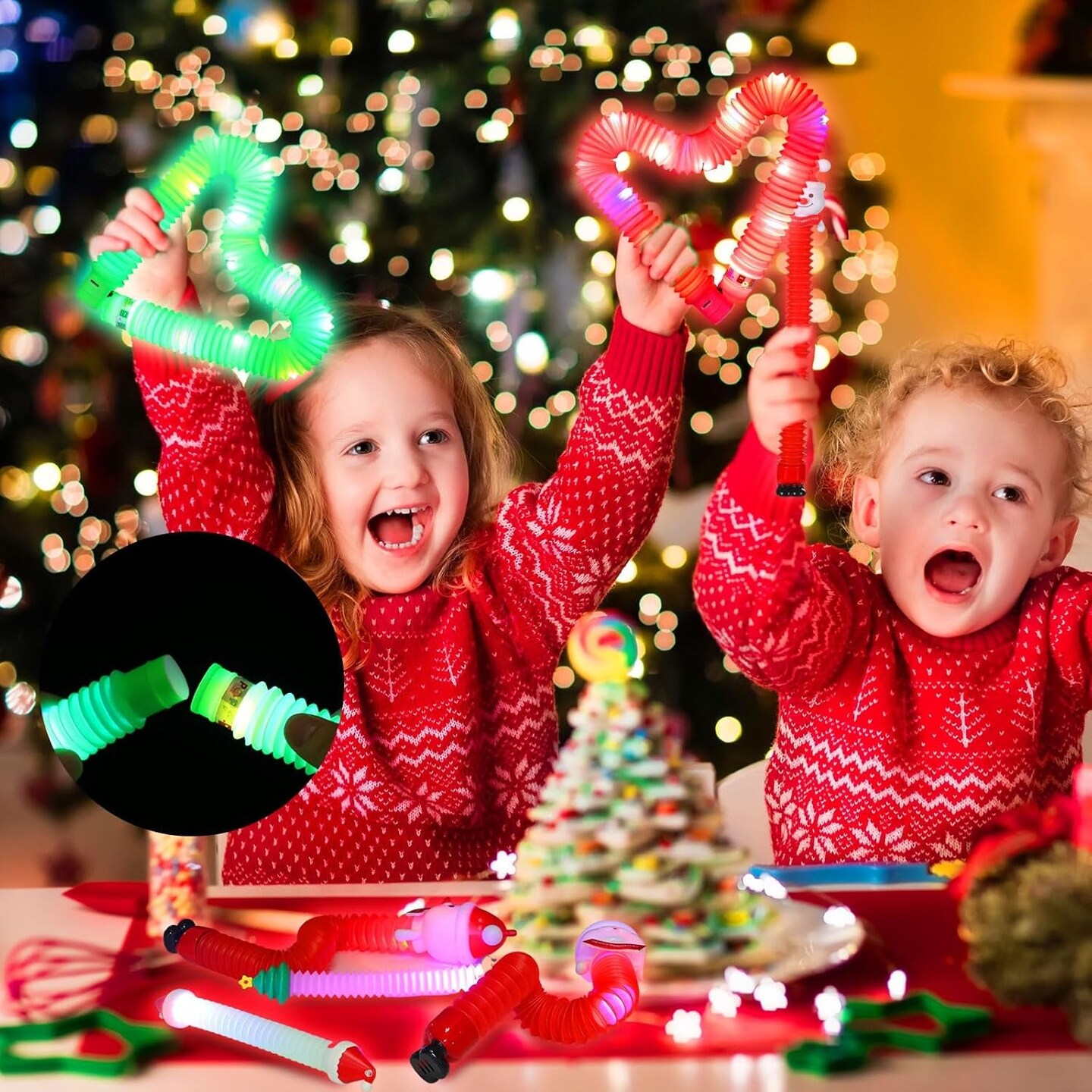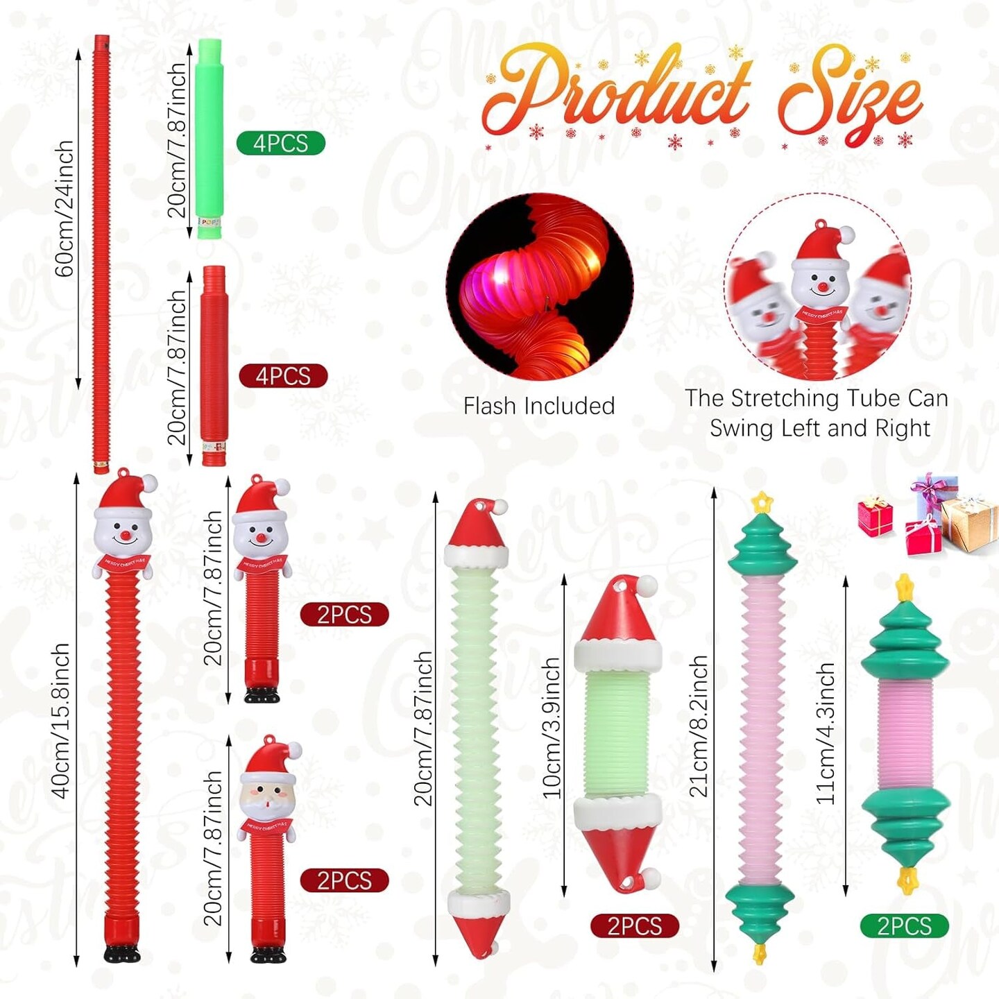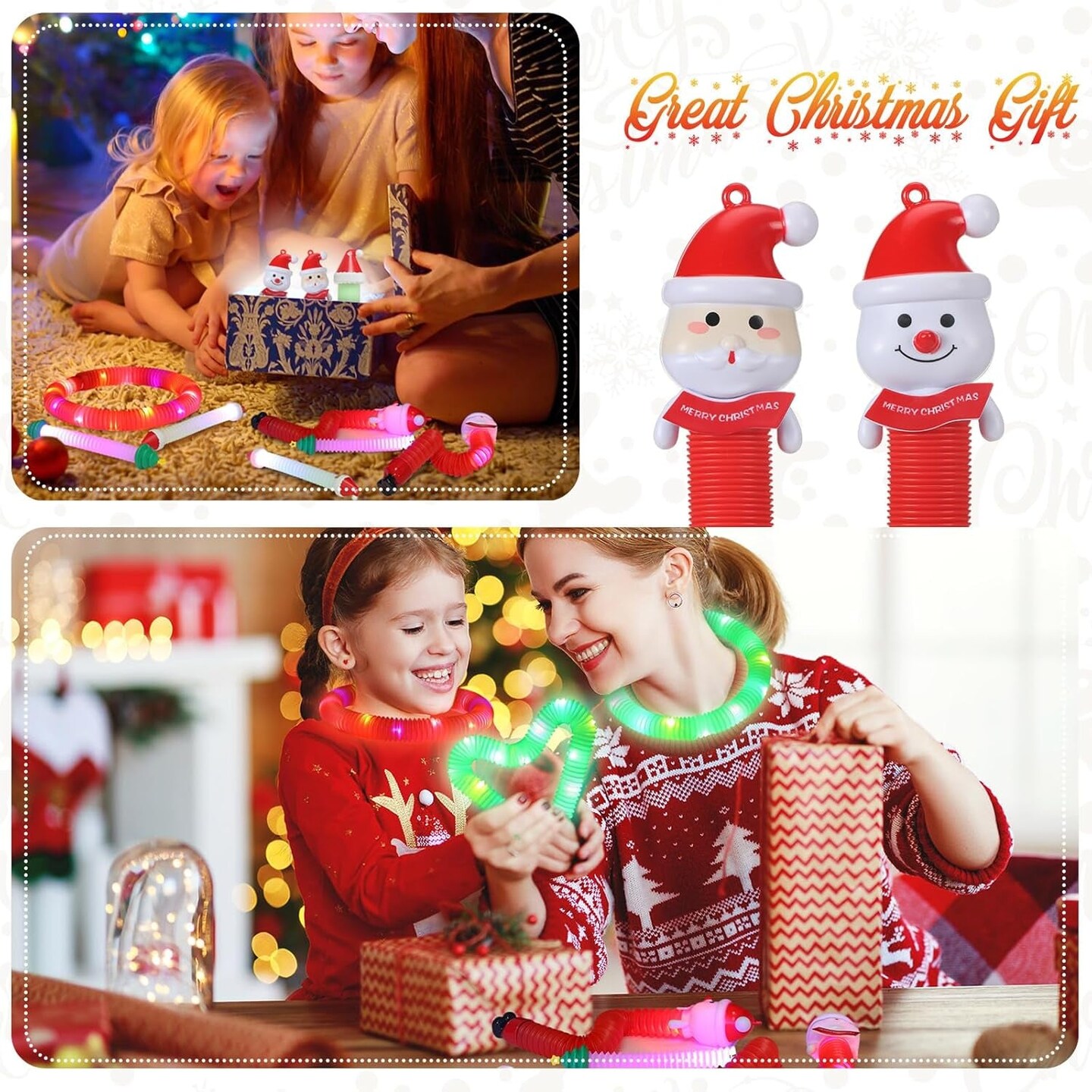 16 Pcs Christmas LED Light up Tubes Toys Sensory Fidget Stretch Tubes Santa Snowman Glow Tubes Pull and Stretch Toys for Christmas Party Favors, Goodie Bag Stuffers