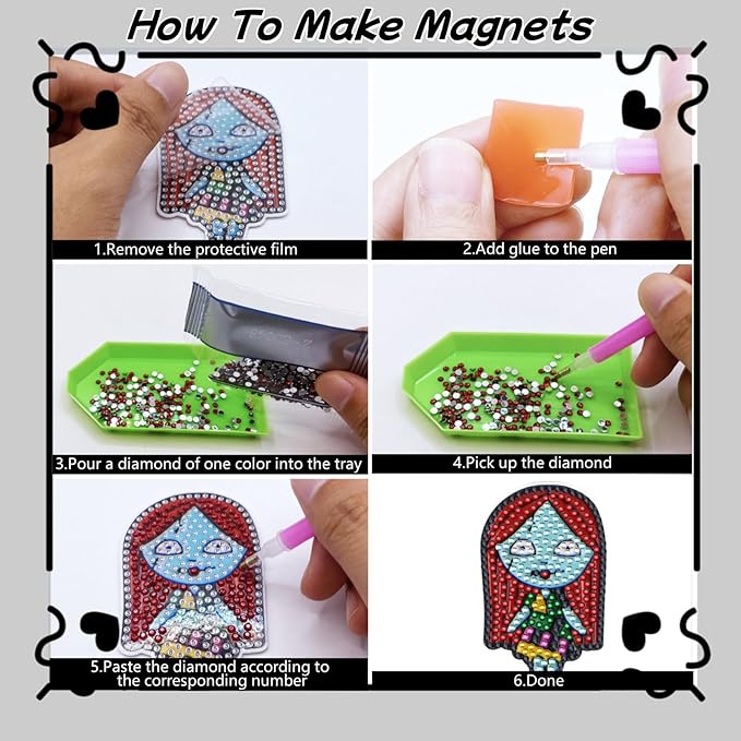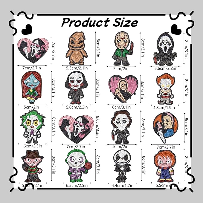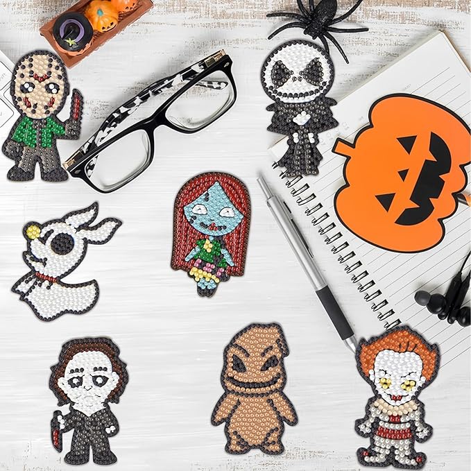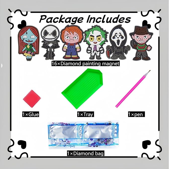 16 Pcs Horror Diamond Painting Magnets Kits Diamond Art Fridge Magnet Refrigerator Sticker Diamond Painting kit for Beginners Adults DIY Art Craft Gifts Home Decors