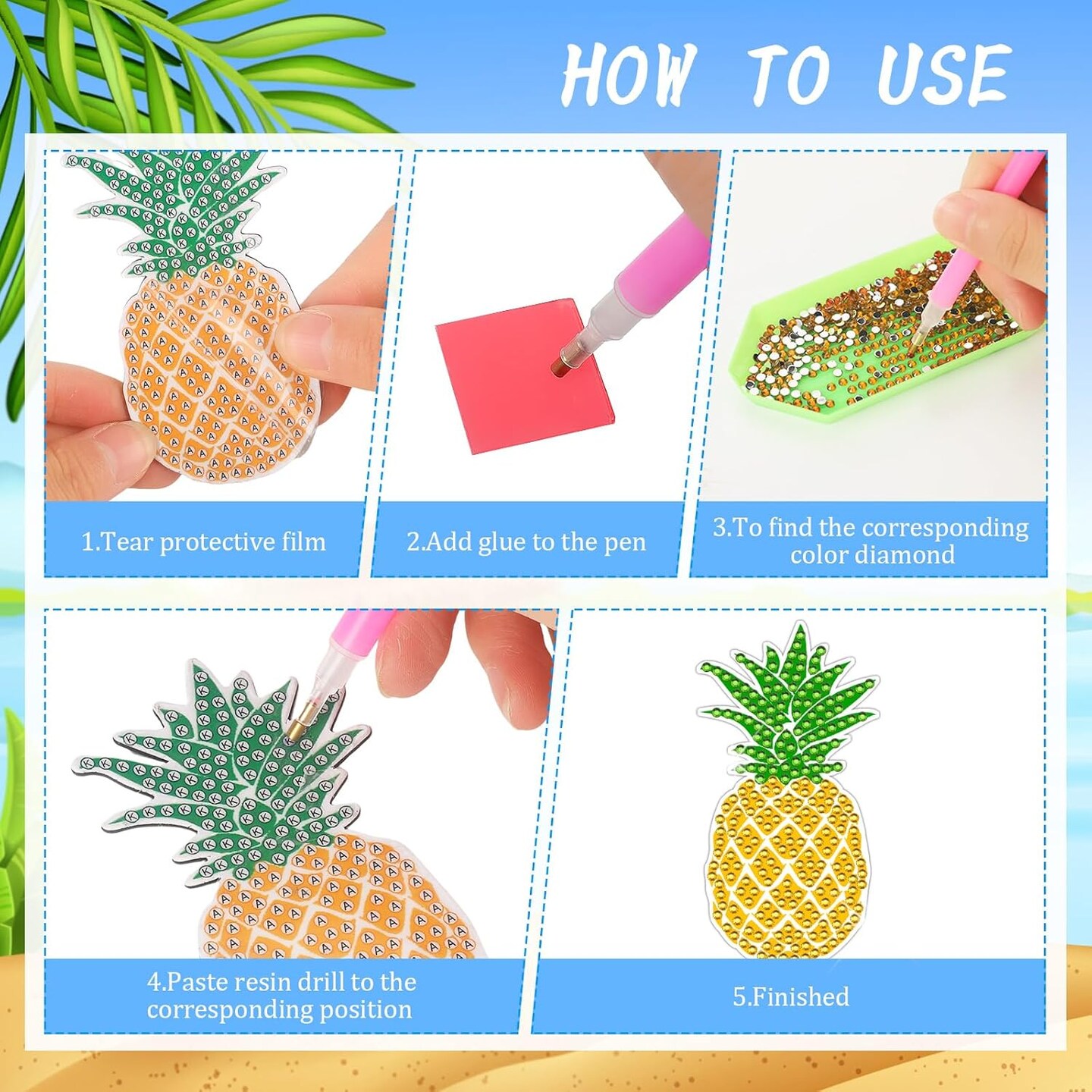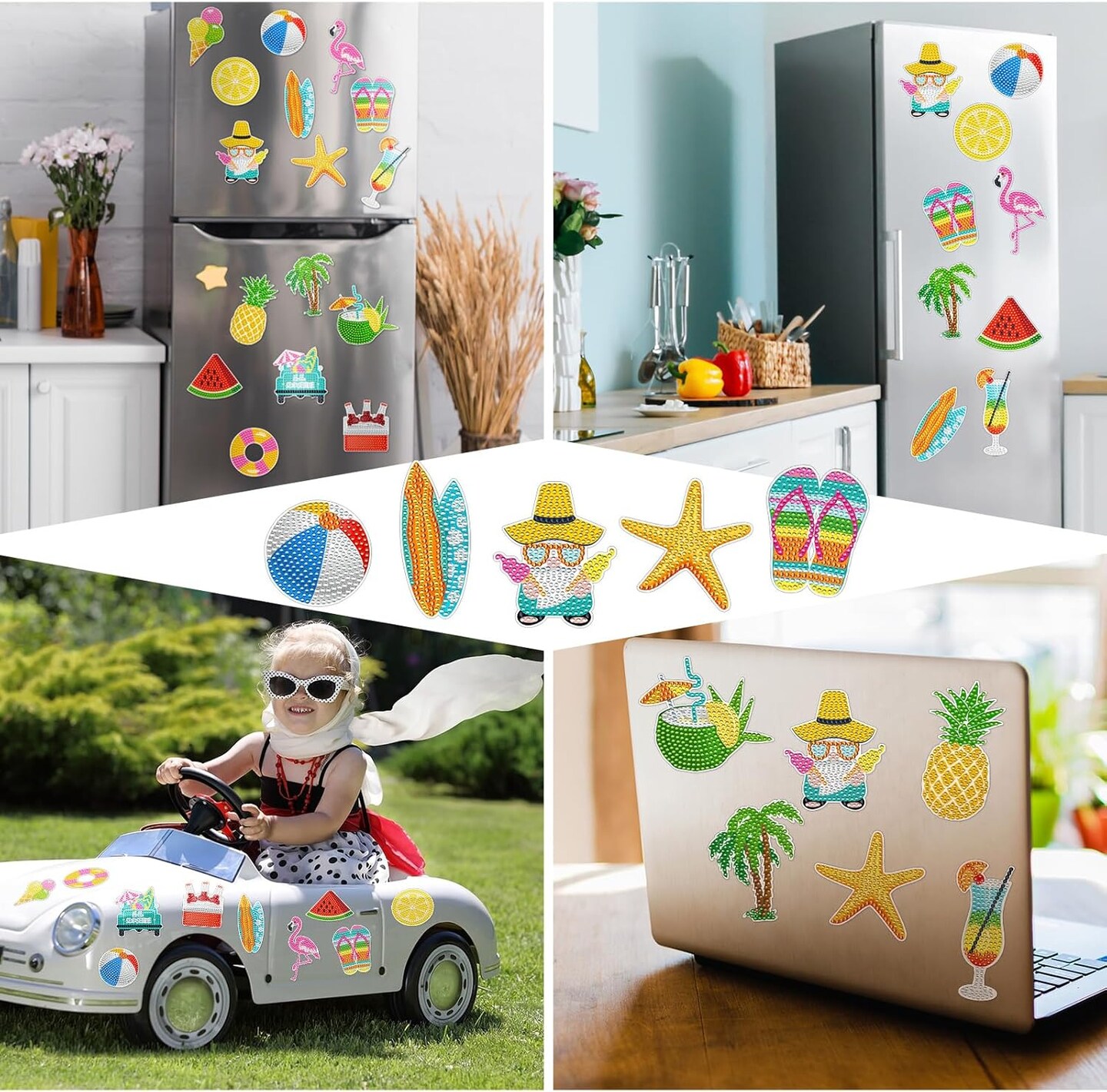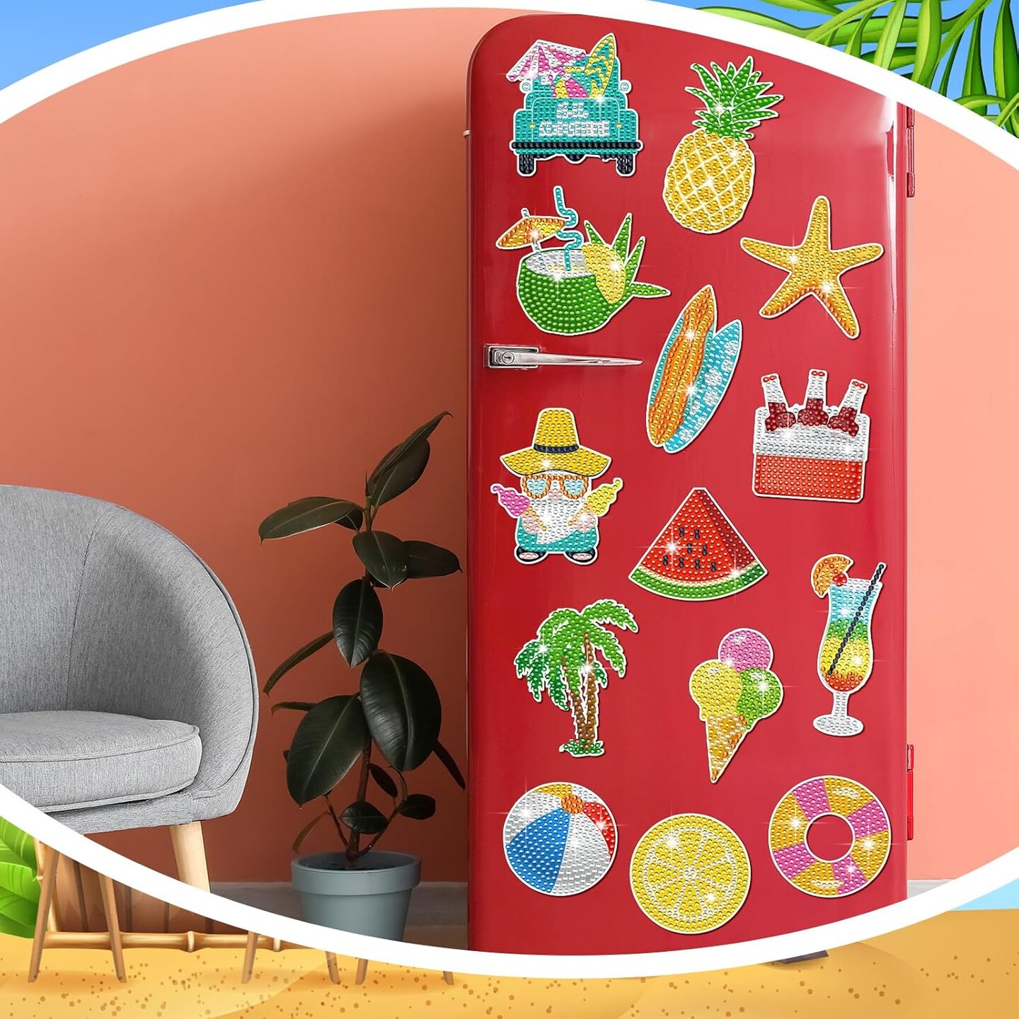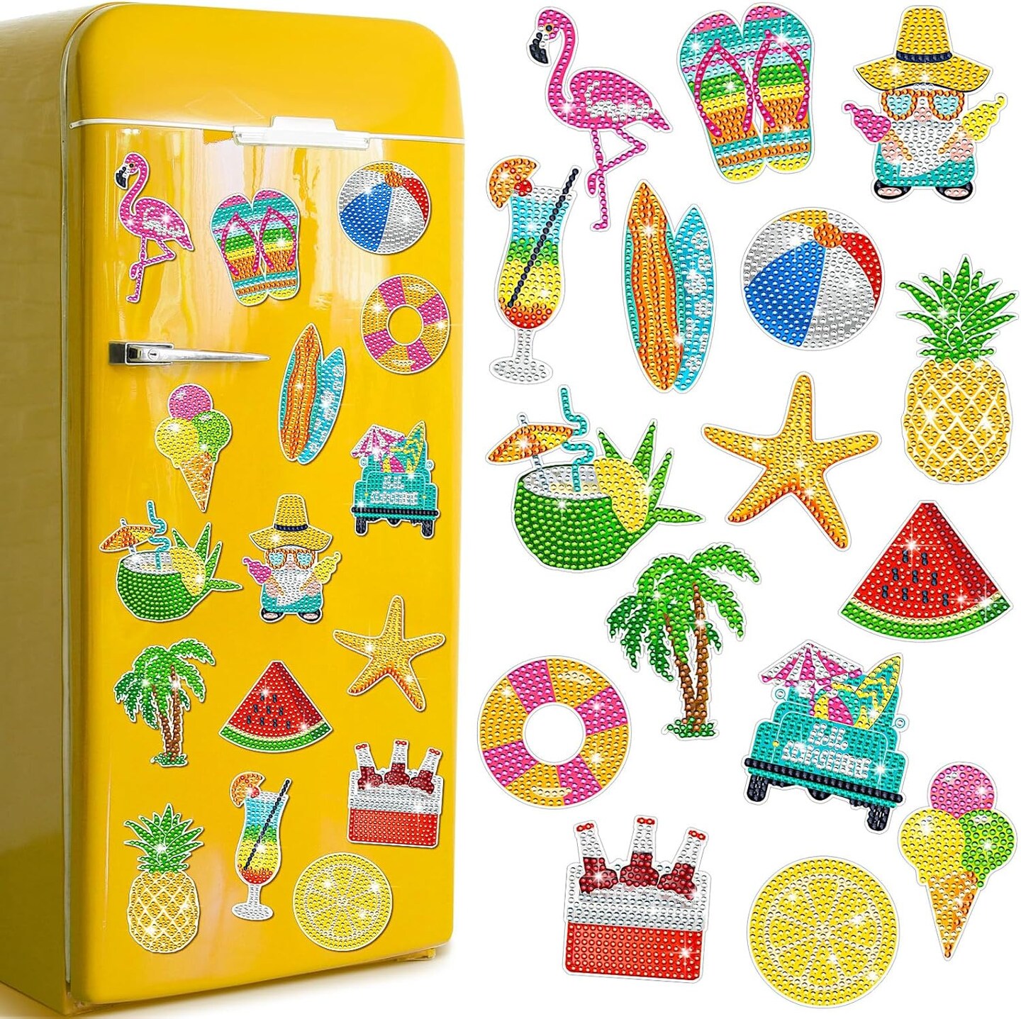 16 Pcs Summer Diamond Art Magnets for Refrigerator Beach Hawaiian Fridge Diamond Painting Magnets Kits