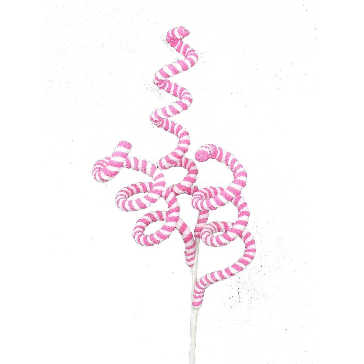16" Peppermint Curly Chenille Pick: Pink & White