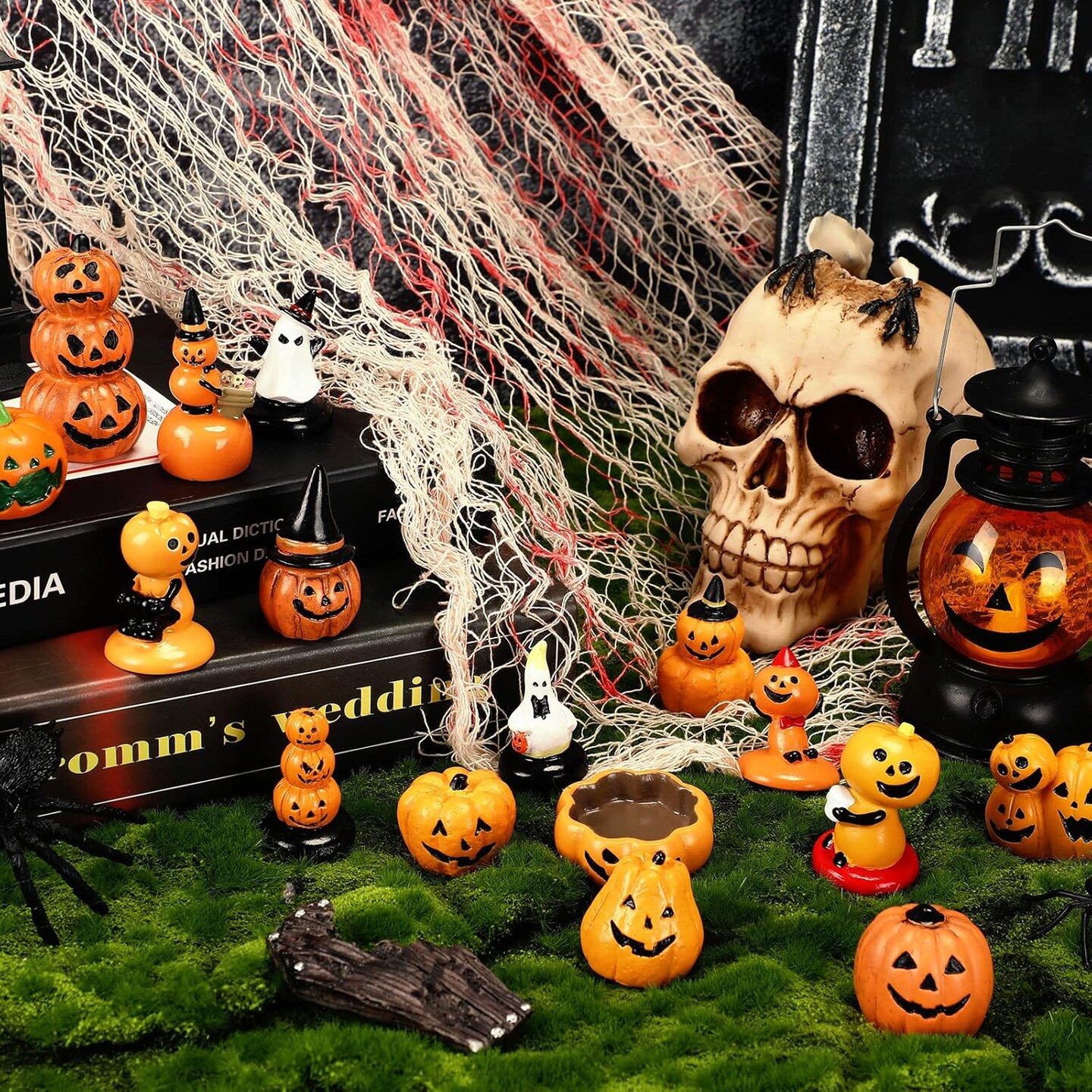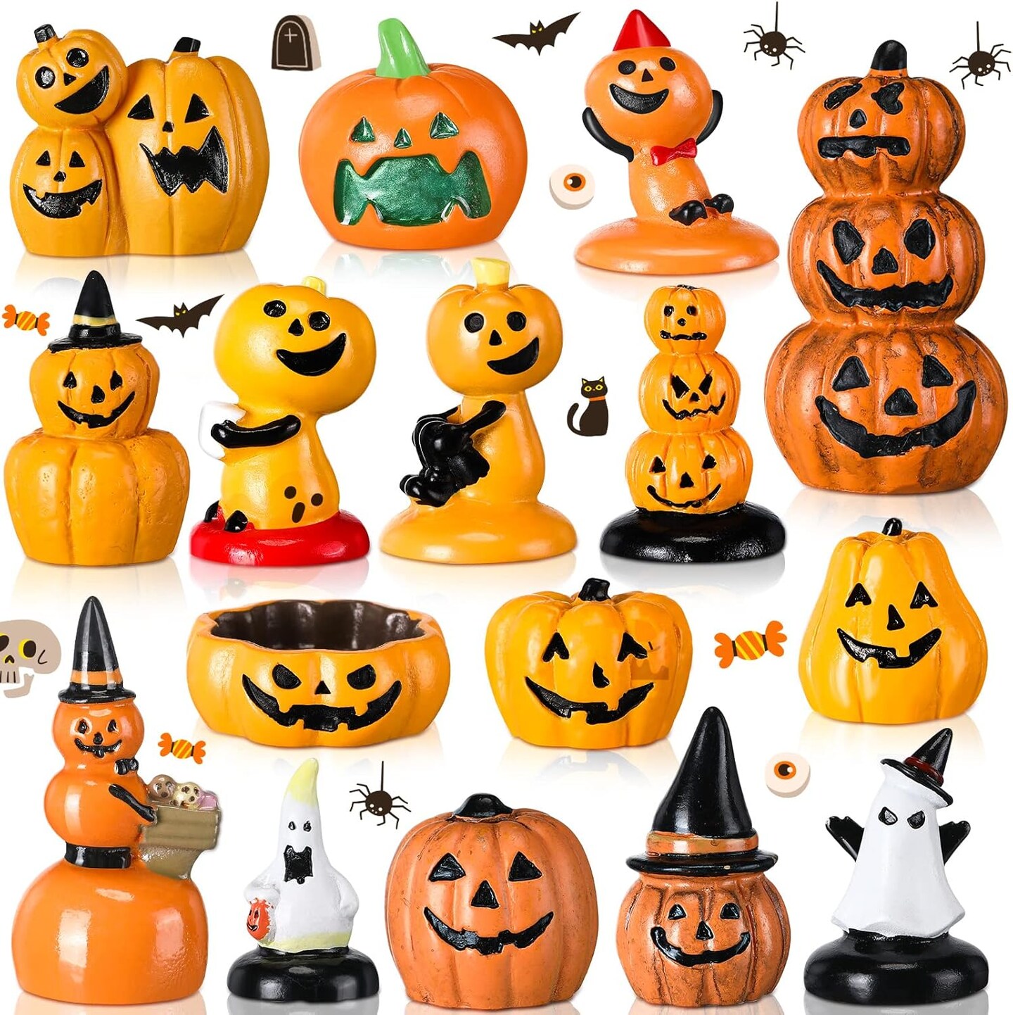 16 Pieces Halloween Miniatures Pumpkins Ghost Miniature Figurines