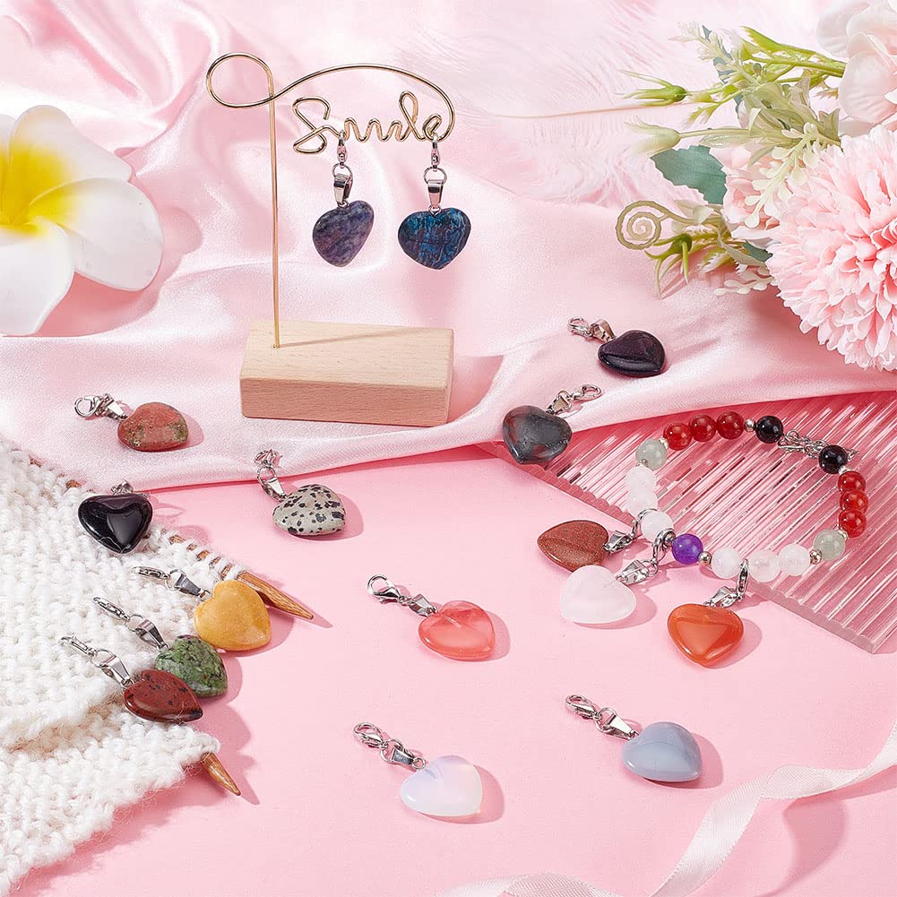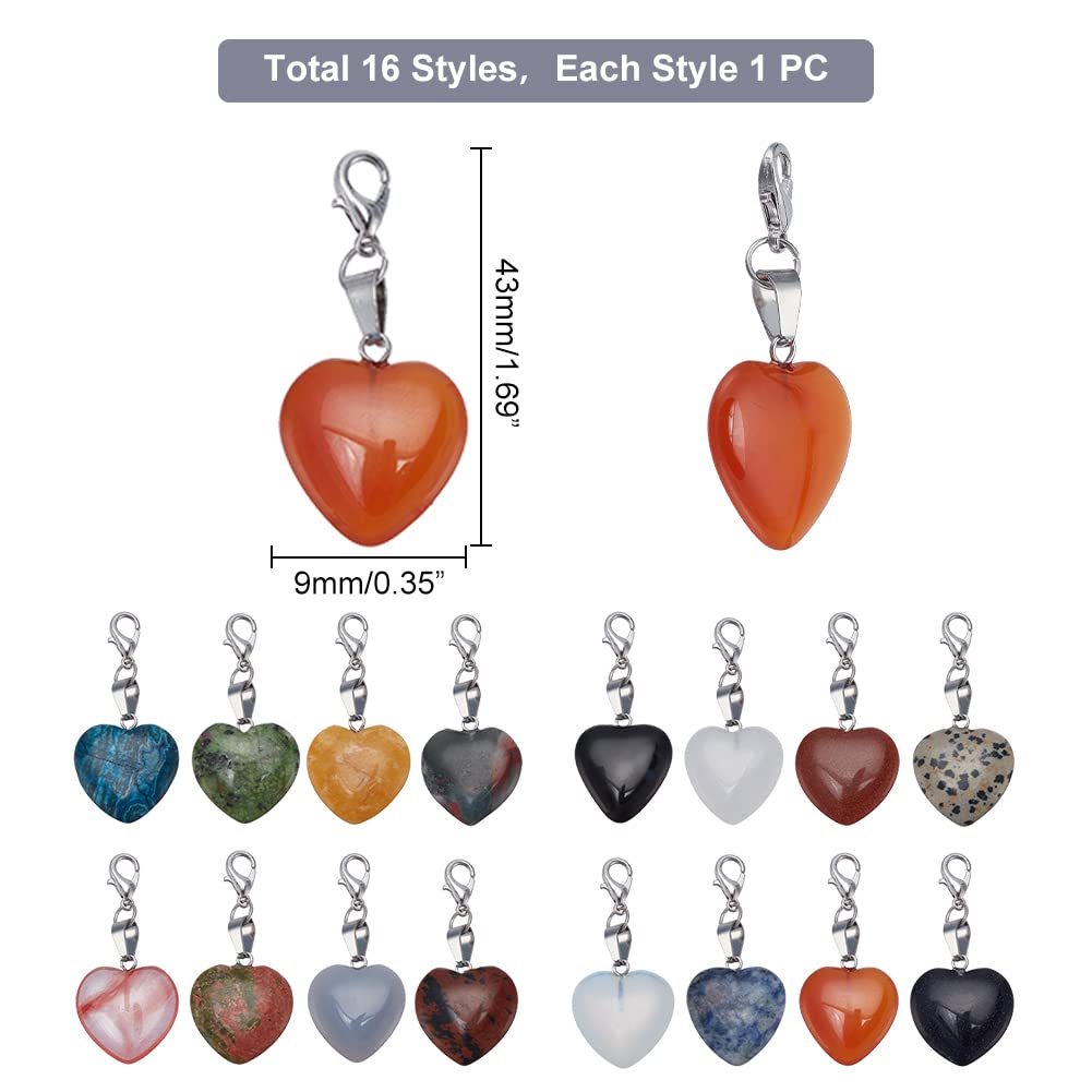 16 Pieces Heart Stone Charms Love Heart Pendants Valentine Charms Quartz Gemstone Chakra Stone Charm Pendants with Lobster Claw Clasps for Valentine Mother Wedding Necklace Jewelry Making