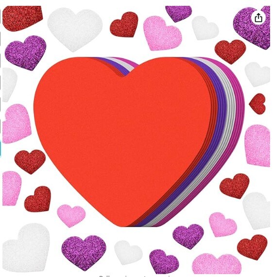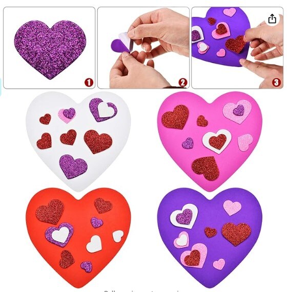 16 pieces of Valentine's Foam Heart Foam Craft Hearts and 300 Glitter Heart Stickers Self-Adhesive Foam Stickers for Valentine's Day Wedding DIY Craft Supplies, 4 colours