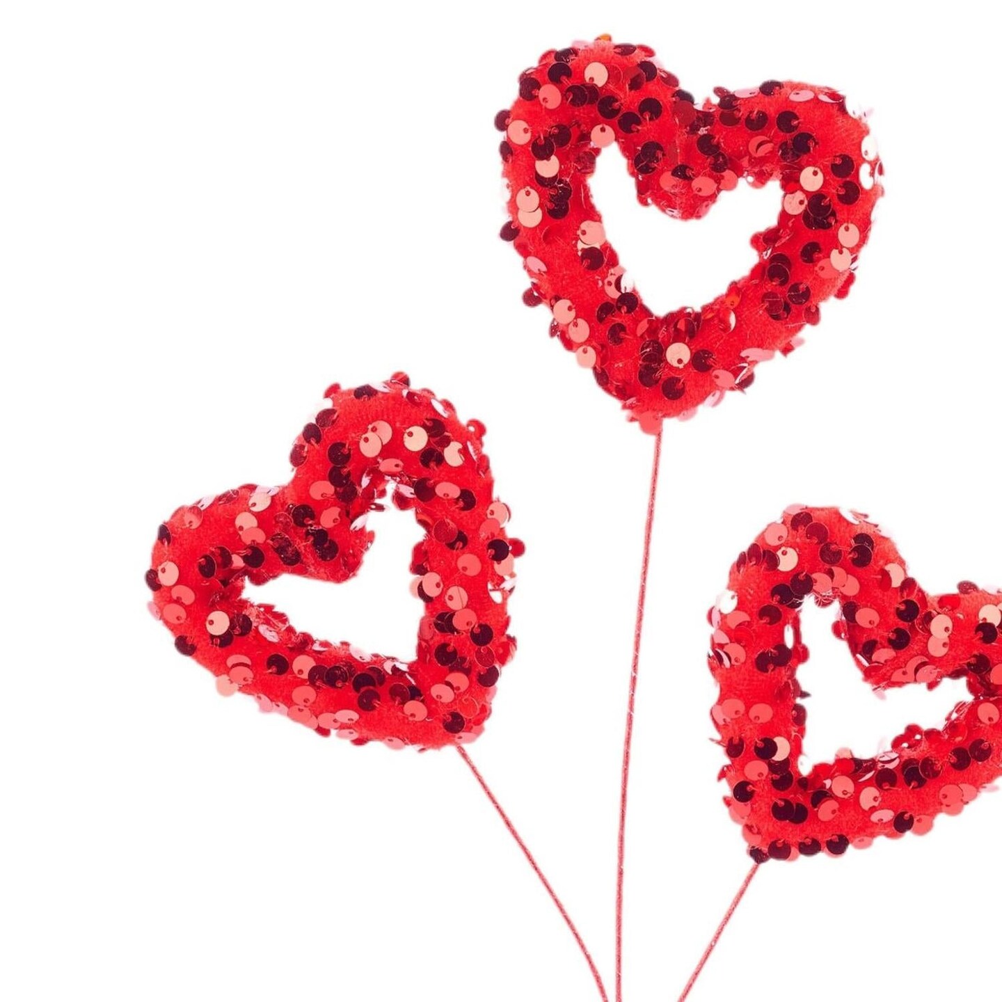 16" Sequin Hollow Heart Pick: Red