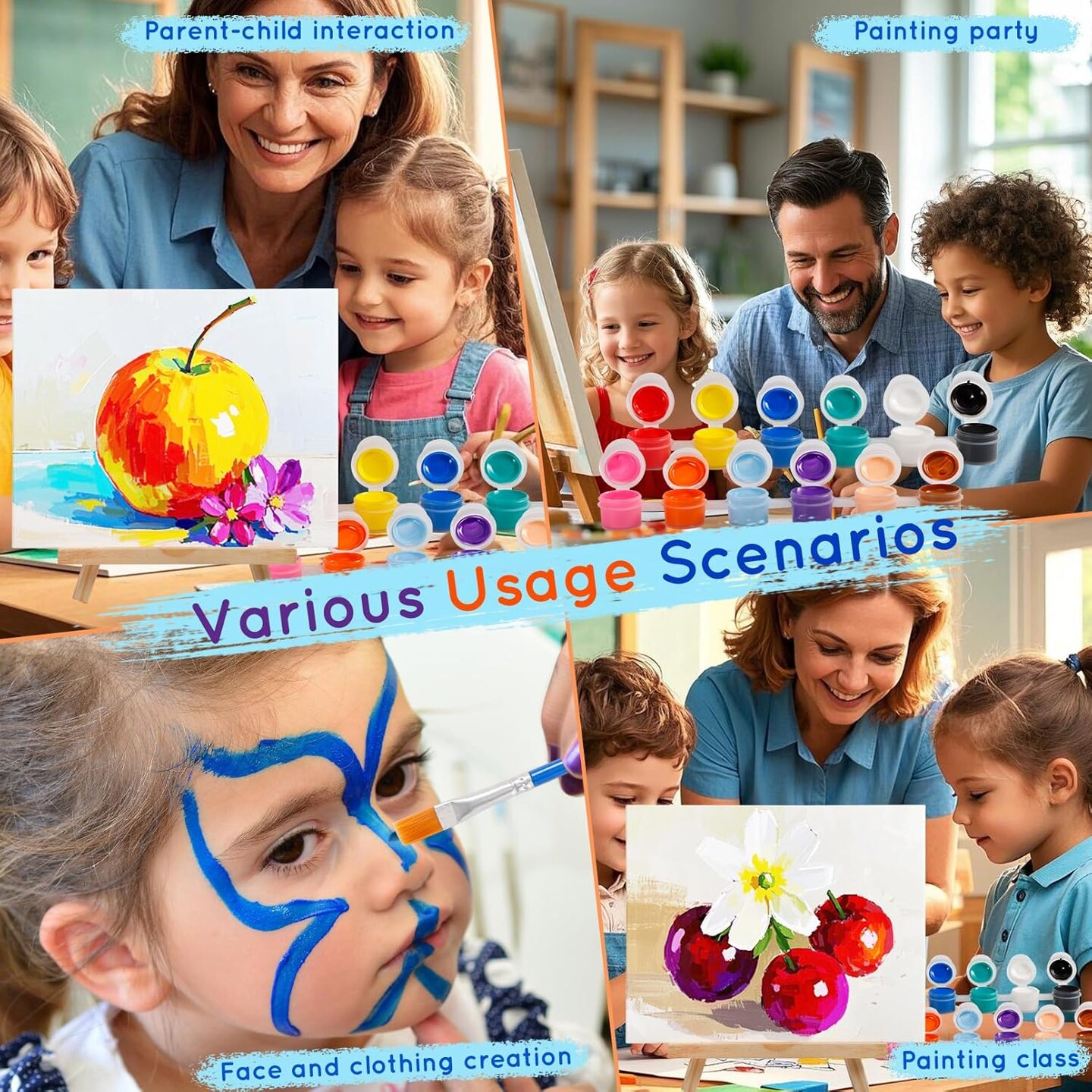 16 Set Canvas Panels and Easel Painting Kit,8 x 10 in Painting Canvases with Easel,16 Acrylic Paint Strips with 32 Brushes,16 Palettes,Art Painting Kits for Birthday Party Favors