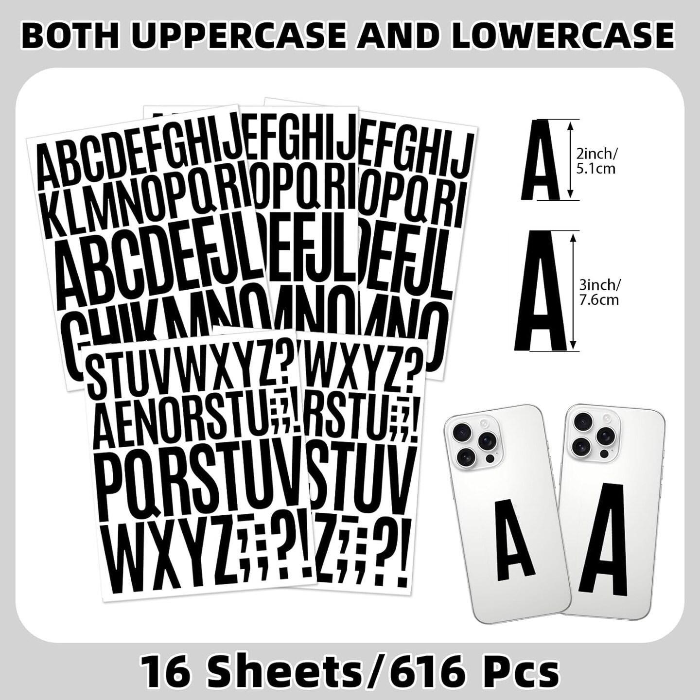 16 Sheets Letter Stickers Large 2+3 Inch, Big Vinyl Alphabet Letter Stickers