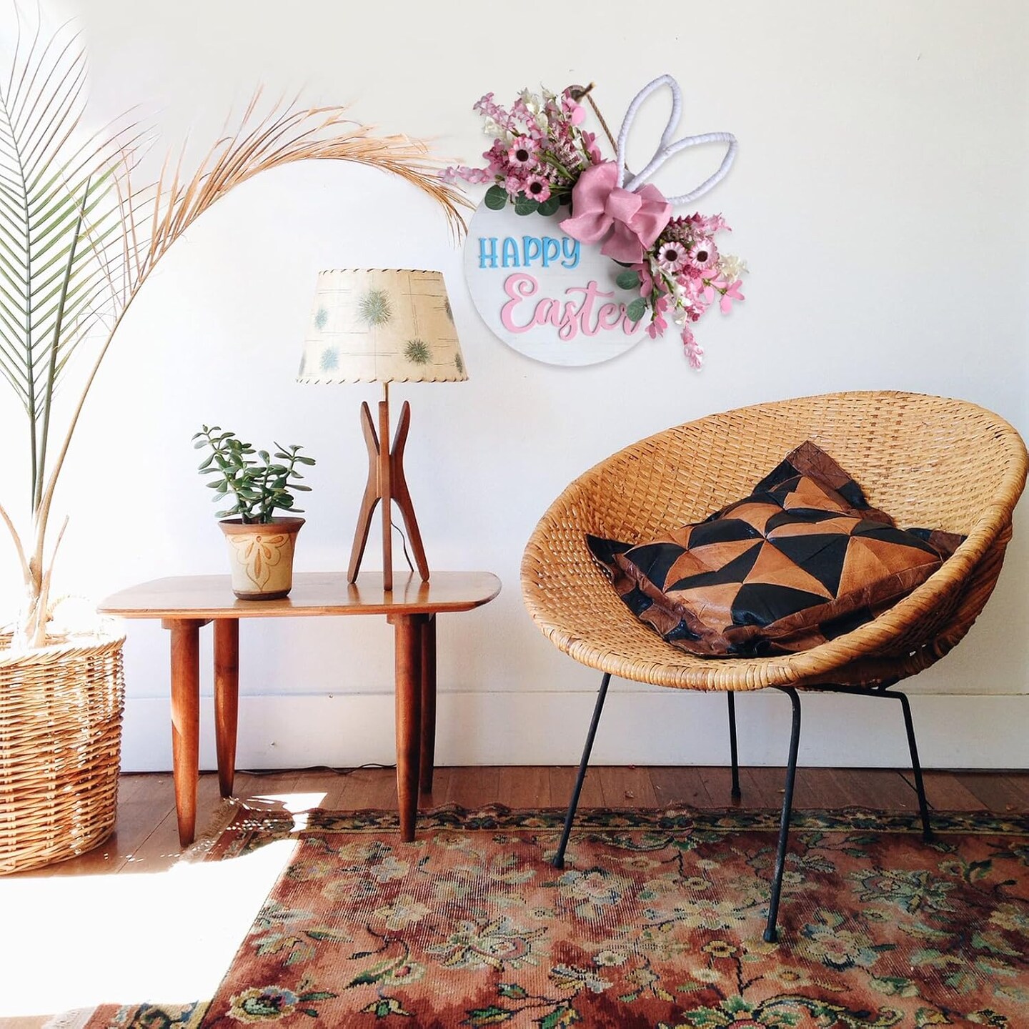 16" Spring Pink Flower Wreath with Happy Easter Sign – Front Door & Wall Decor