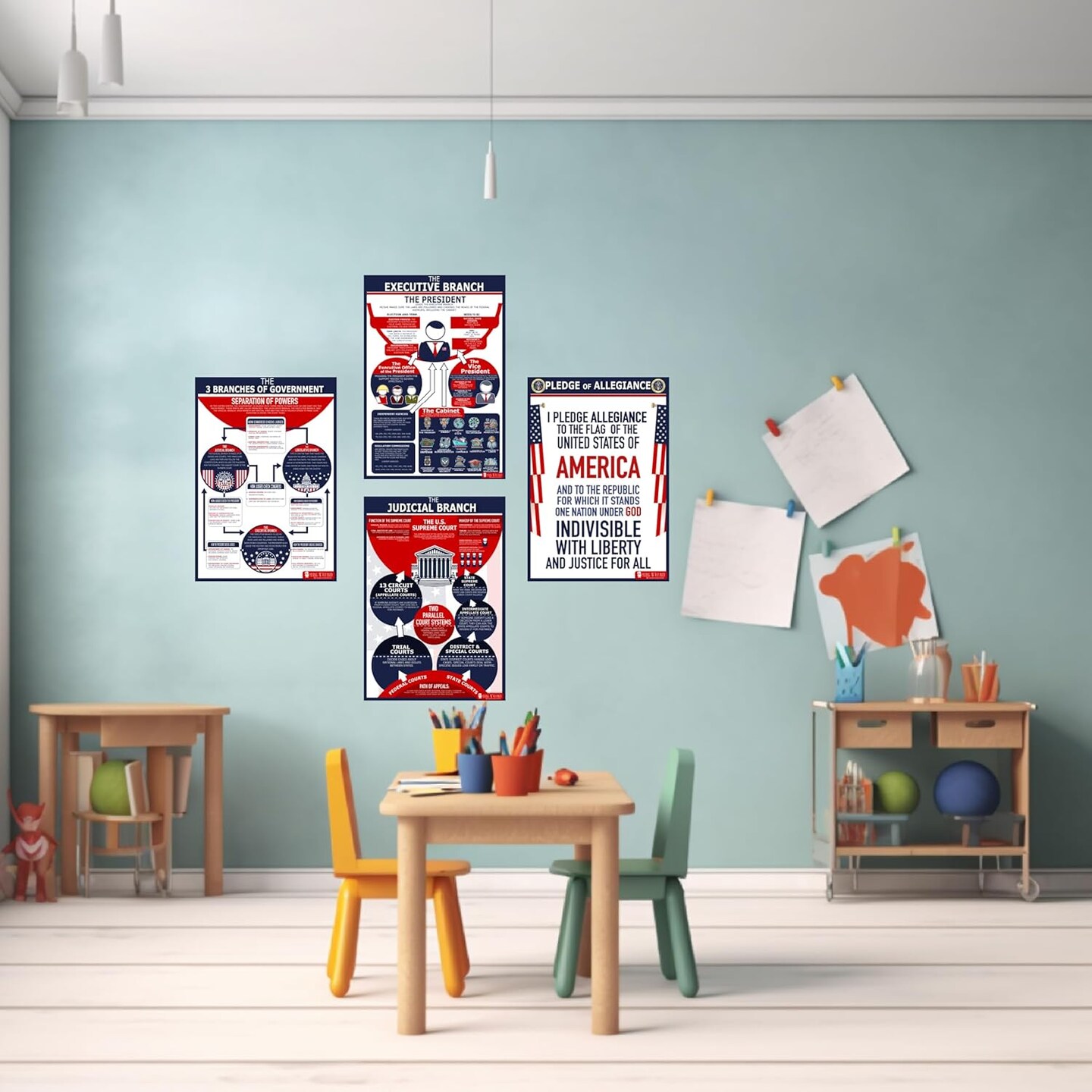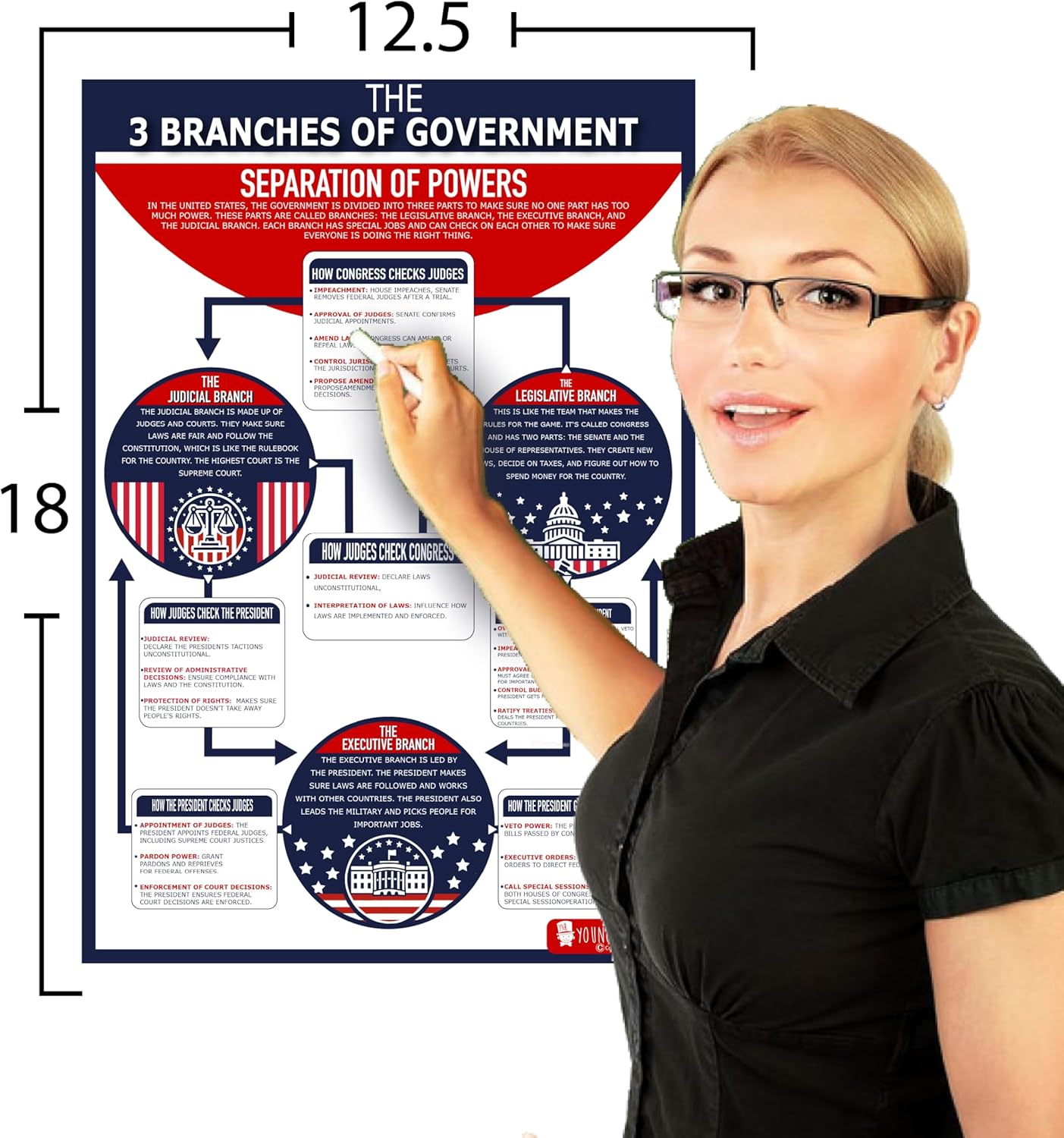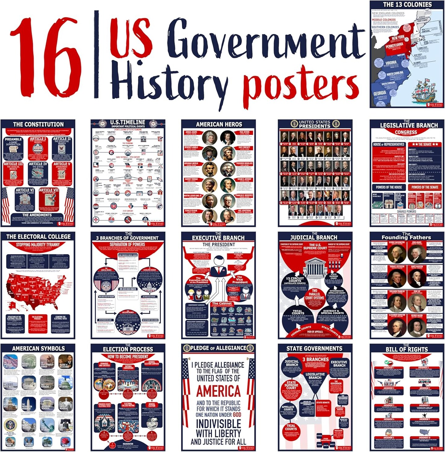 16 US Government History LARGE poster pack Charts for classrooms 12.5x18 Matt (Young N Refined)