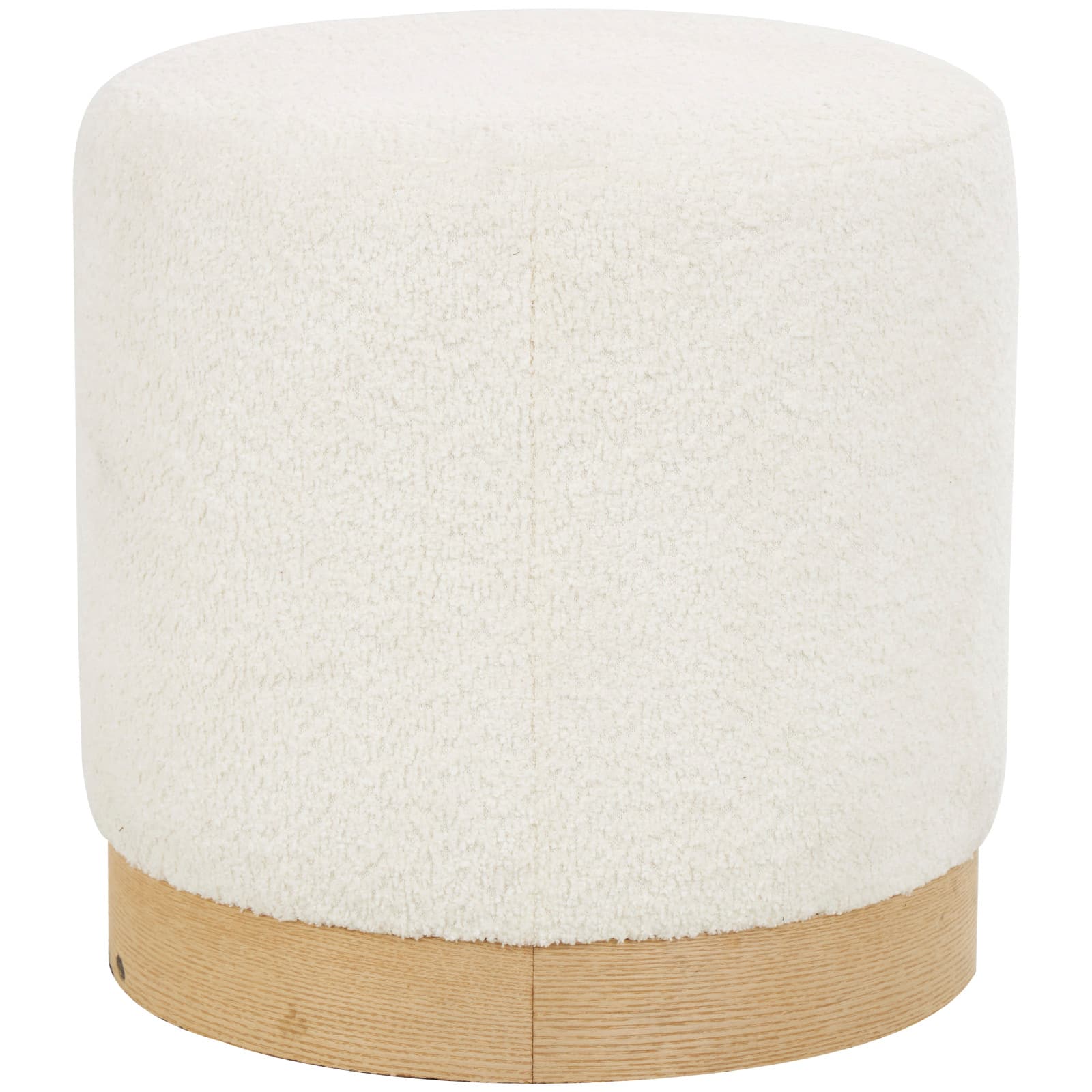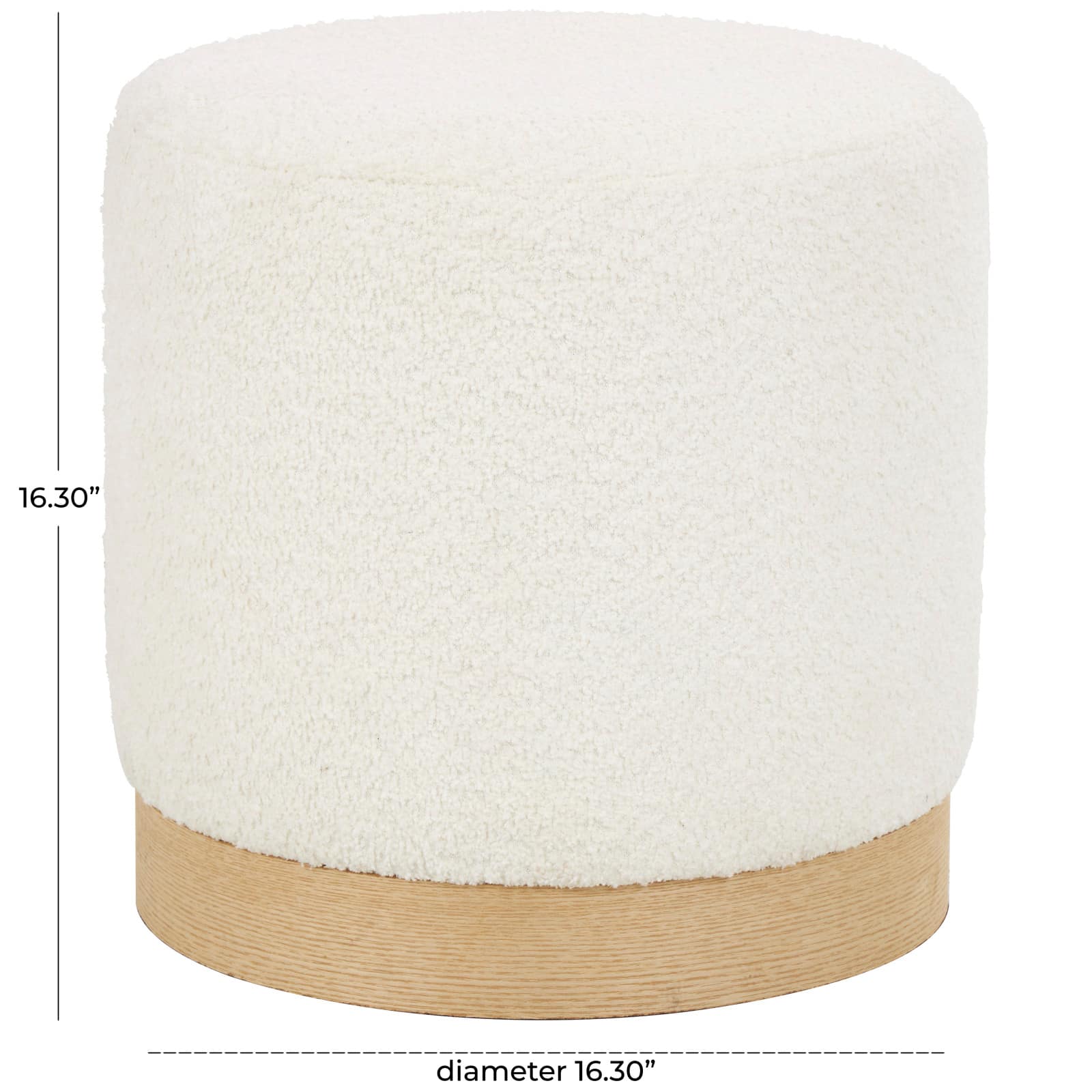 16" White Geometric Boucle Stool with Brown Wooden Base